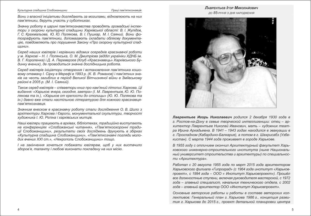 | Бібліографія: | Лаврентьєв Ігор Миколайович. До 85-річчя з дня народження. Праці пам'яткознавців: зб. наук. ст. Випуск IV, Харків : Курсор, 2015. C. 5–6 , іл. |
