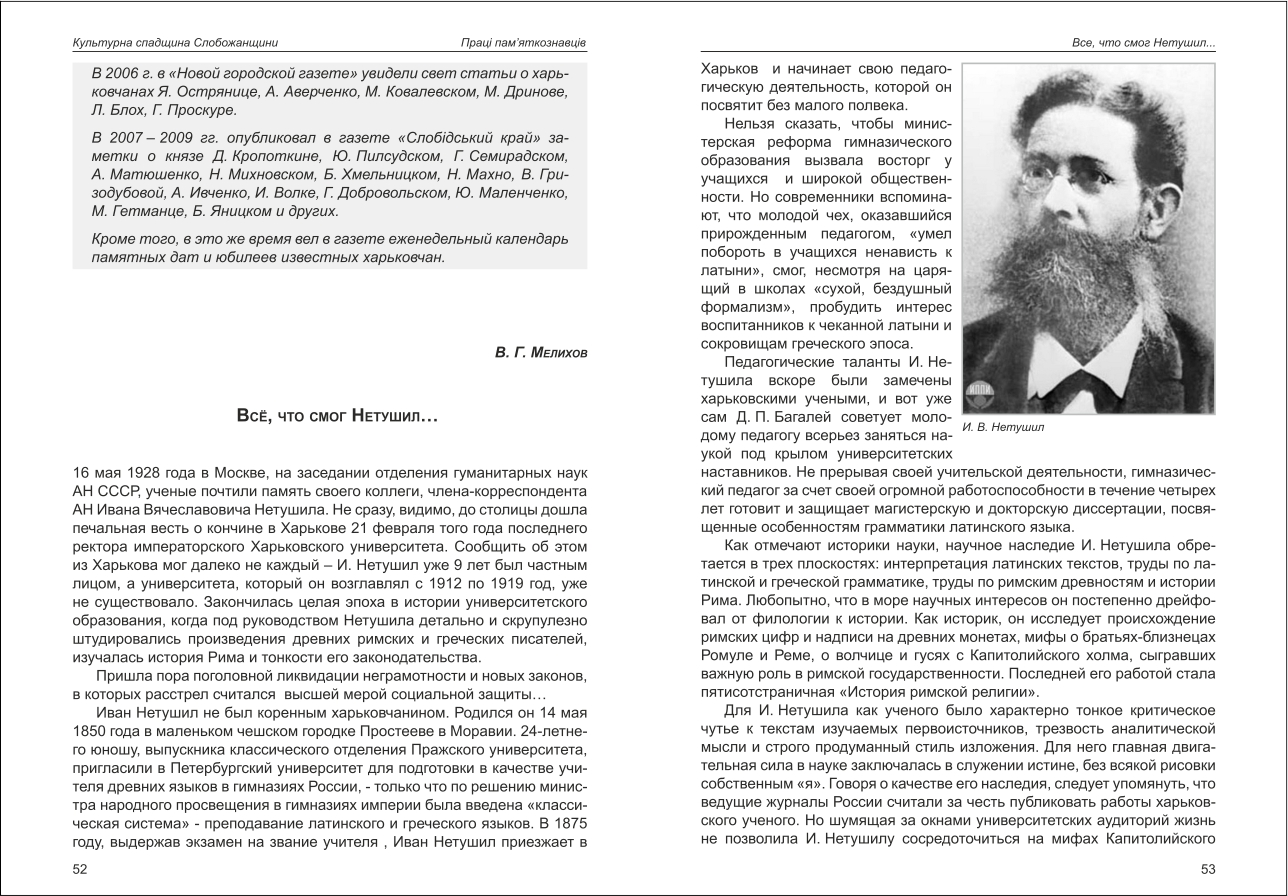 | Бібліографія: | До 75-річчя з дня народження. Меліхов Віктор Григорович. Праці пам'яткознавців: зб. наук. ст. Випуск IV, Харків : Курсор, 2015. C. 51–52 , іл. |