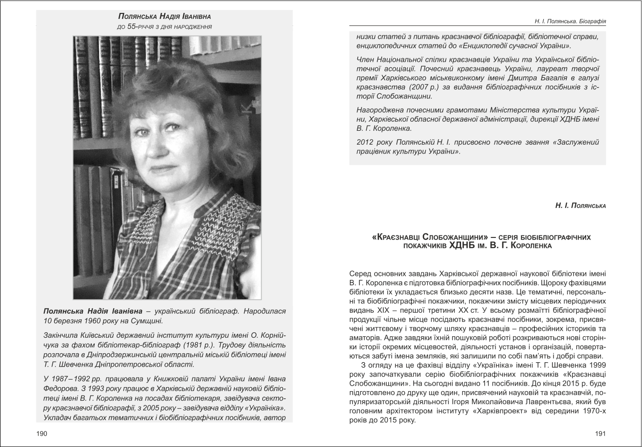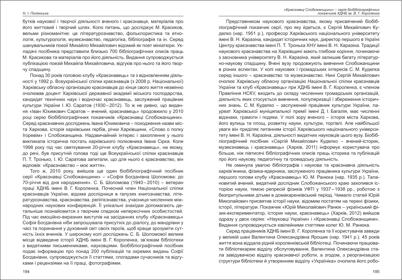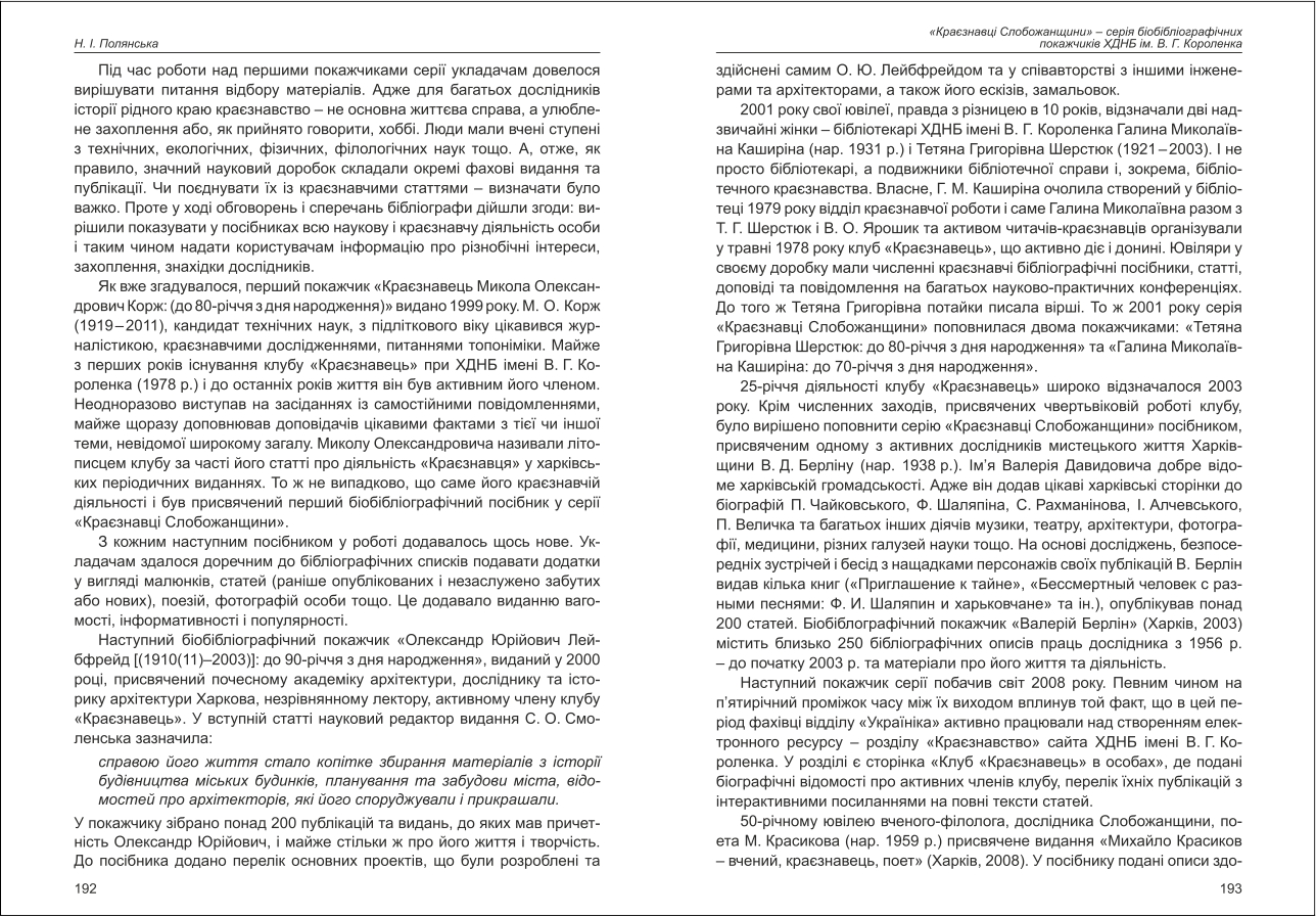 | Назва статті: | «Краєзнавці Слобожанщини» - серія біобібліографічних покажчиків ХДНБ ім. В.Г. Короленка |