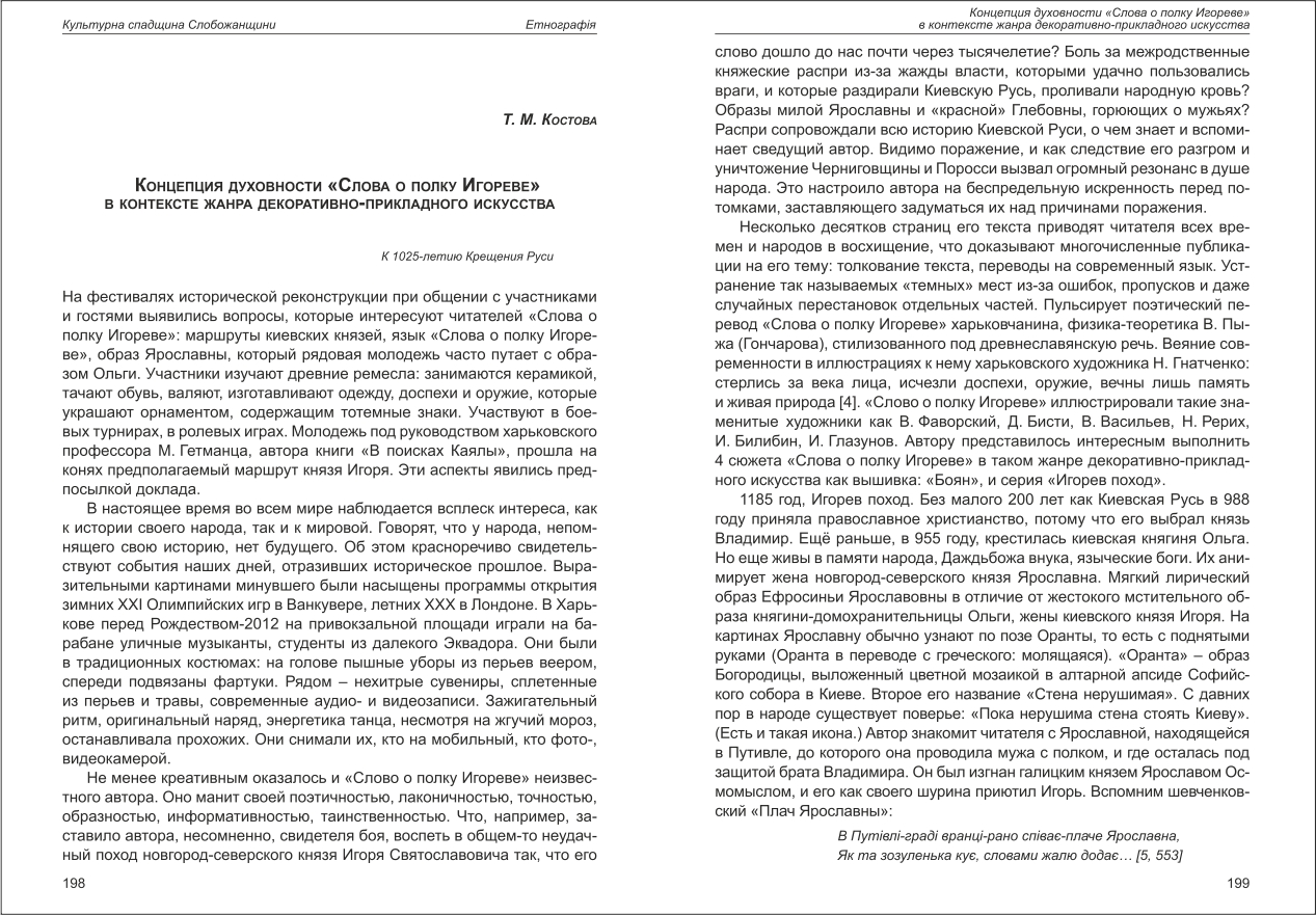 | Назва статті: | Концепция духовности "Слова о полку Игореве" в контексте жанра декоративно-прикладного искусства |