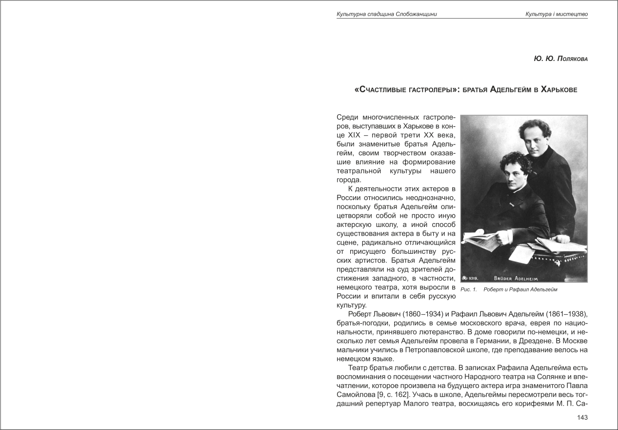 | Назва статті: | «Счастливые гастролёры»: братья Адельгейм в Харькове |