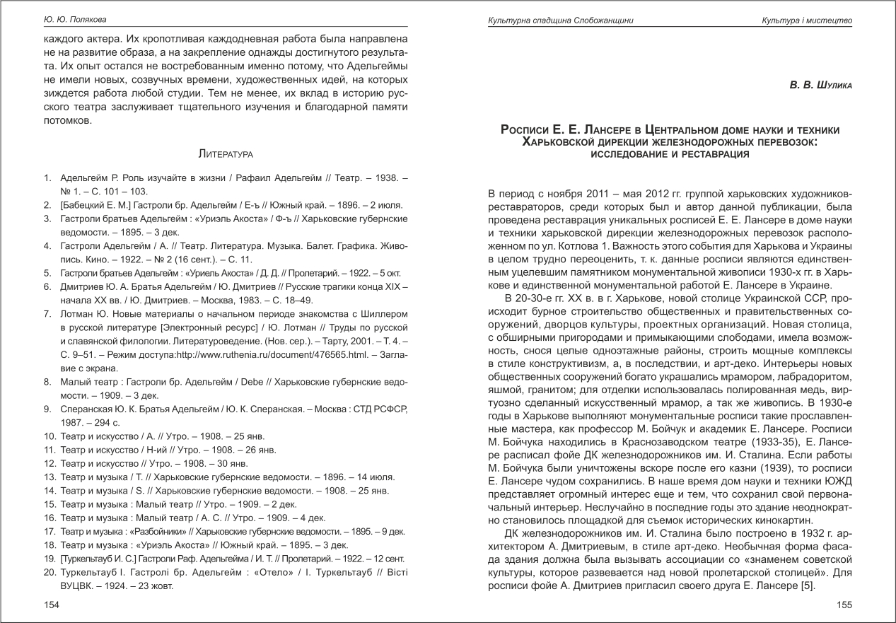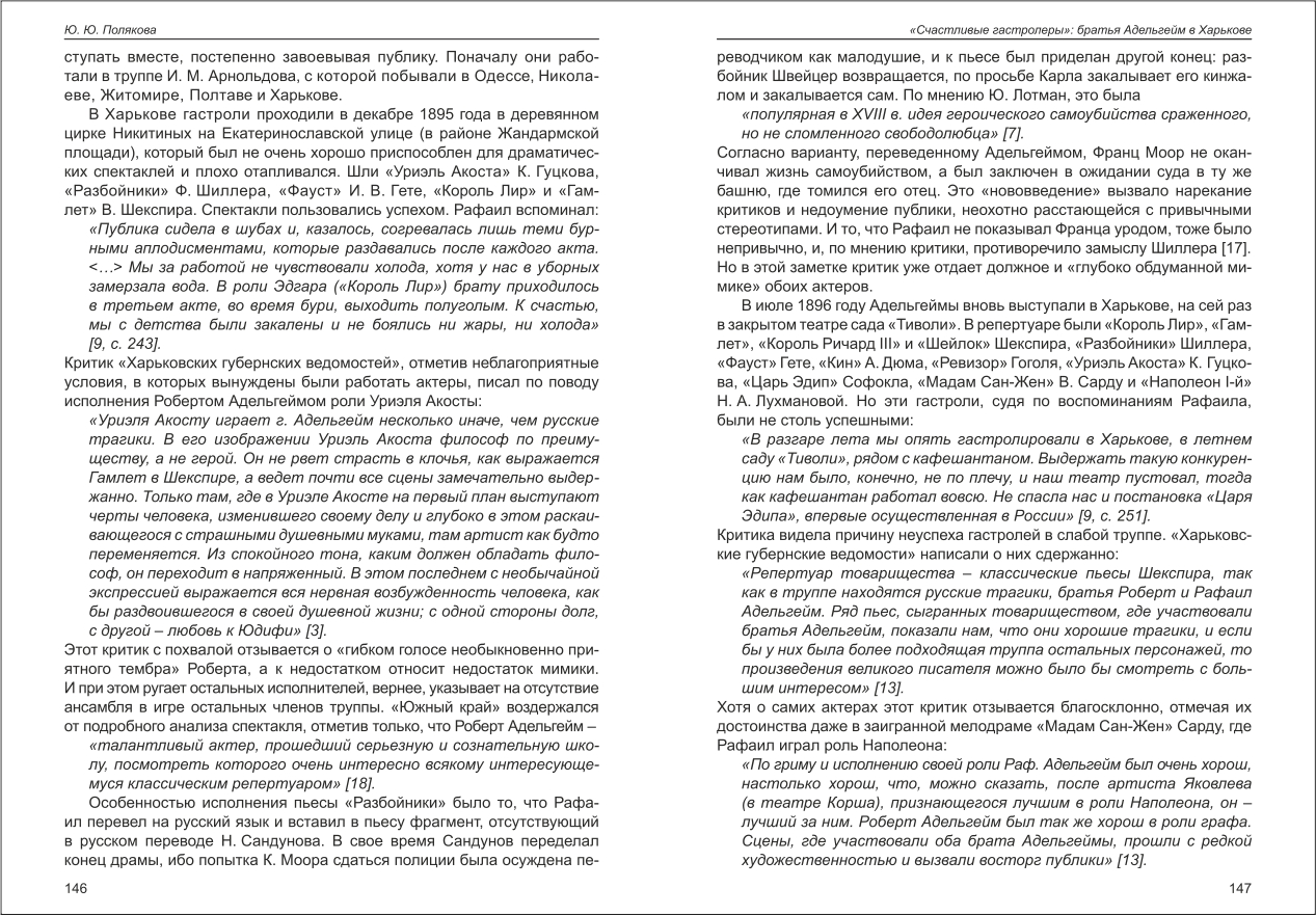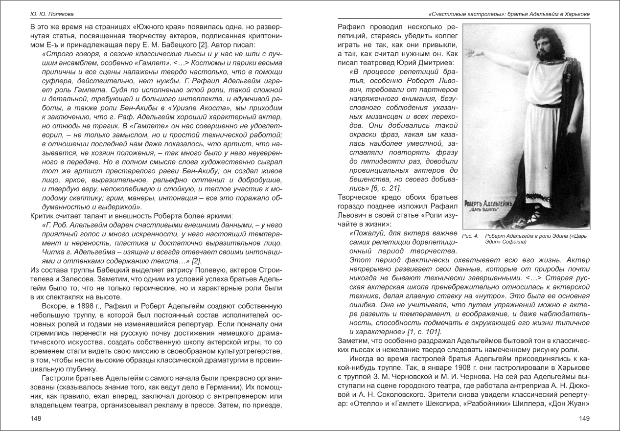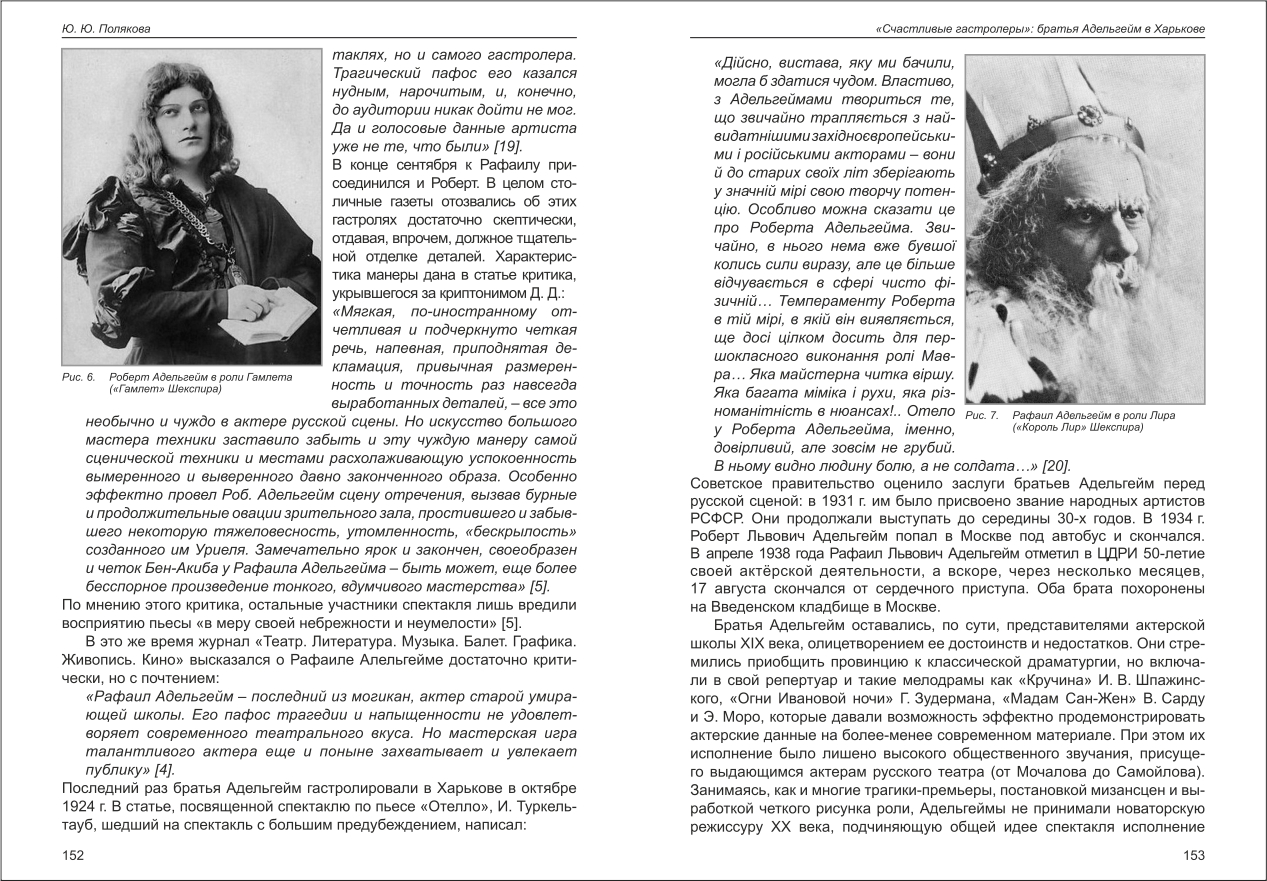 | Бібліографія: | Полякова Ю. Ю. «Счастливые гастролёры»: братья Адельгейм в Харькове. Культурна спадщина Слобожанщини: зб. наук. ст. Число 30, Харків : Курсор, 2016. C. 143–154 , іл. |