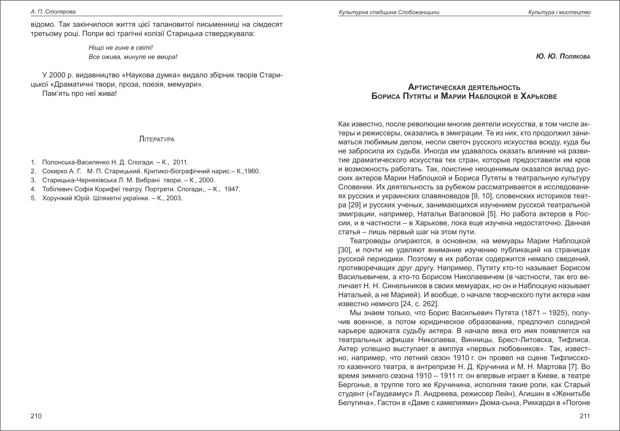 | Бібліографія: | Столярова Г. П. Харків у долі Михайла і Людмили Старицьких. До 175-ліття від дня народження М. Старицького і 140-ліття від дня народження Л. Старицької. Культурна спадщина Слобожанщини: зб. наук. ст. Число 31, Харків : Курсор, 2016. C. 205–210 , іл. |