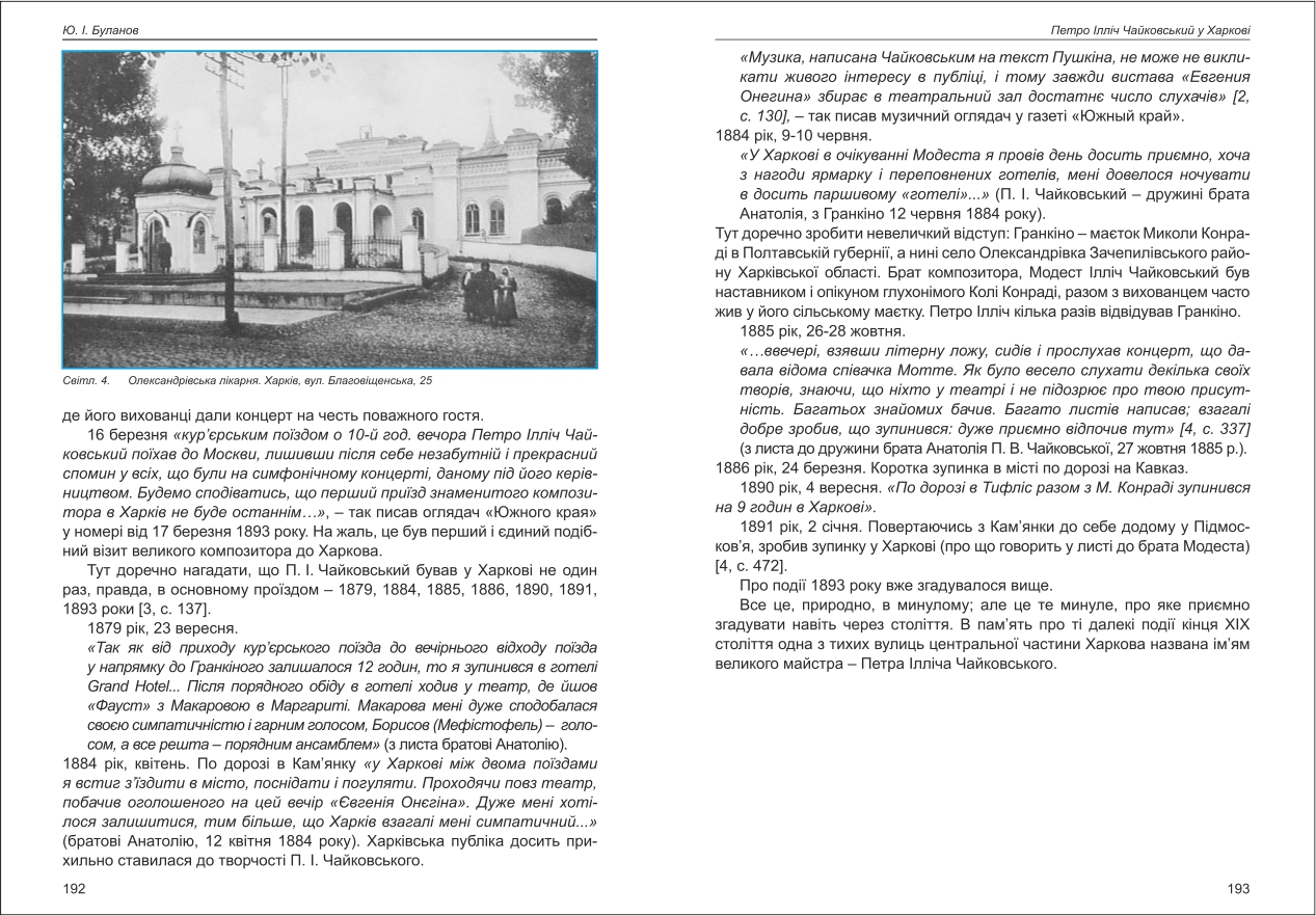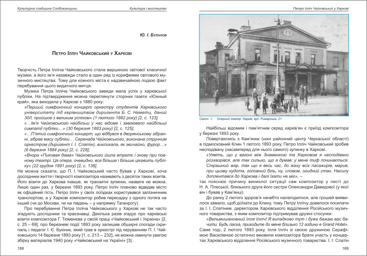 | Бібліографія: | Буланов Ю. І. Петро Ілліч Чайковський у Харкові. Культурна спадщина Слобожанщини: зб. наук. ст. Число 32, Харків : Курсор, 2016. C. 188–194 , іл. |