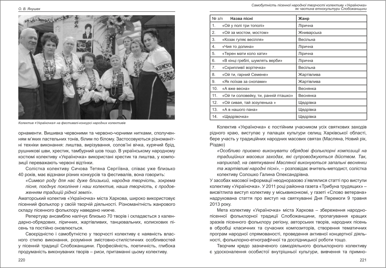 | Назва статті: | Самобутність пісенної народної творчості колективу "Україночка" як частина етнокультури Слобожанщини |