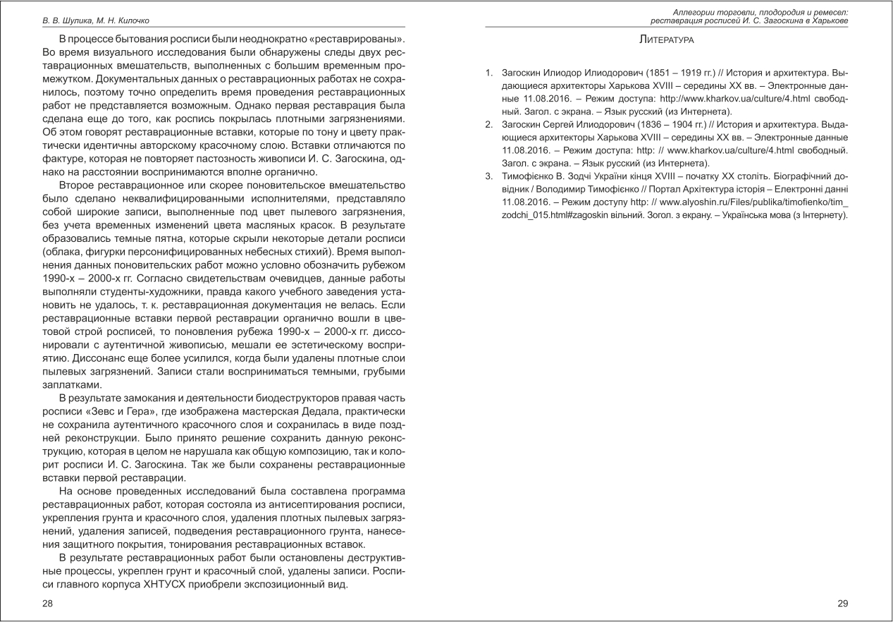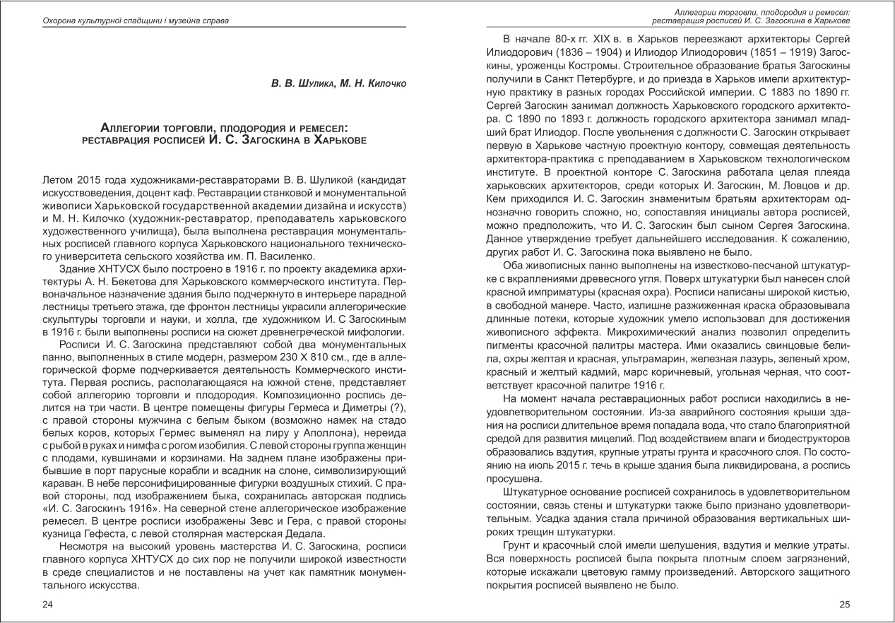 | Назва статті: | Аллегории торговли, плодородия и ремёсел: реставрация росписей И. С. Загоскина в Харькове |