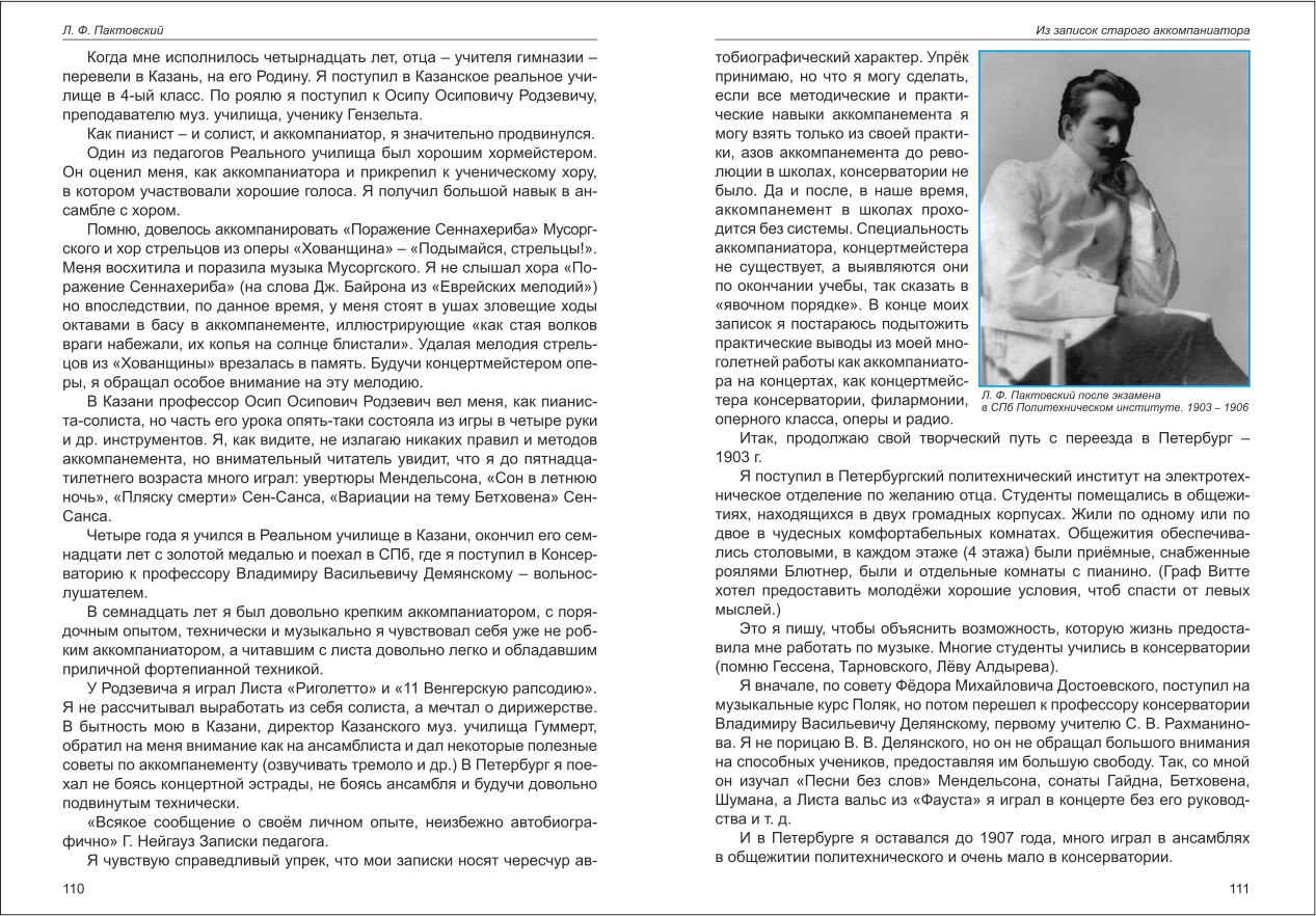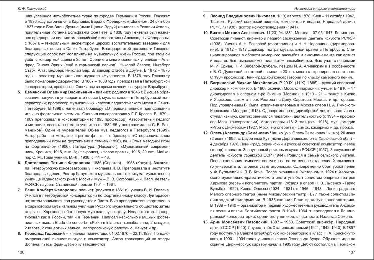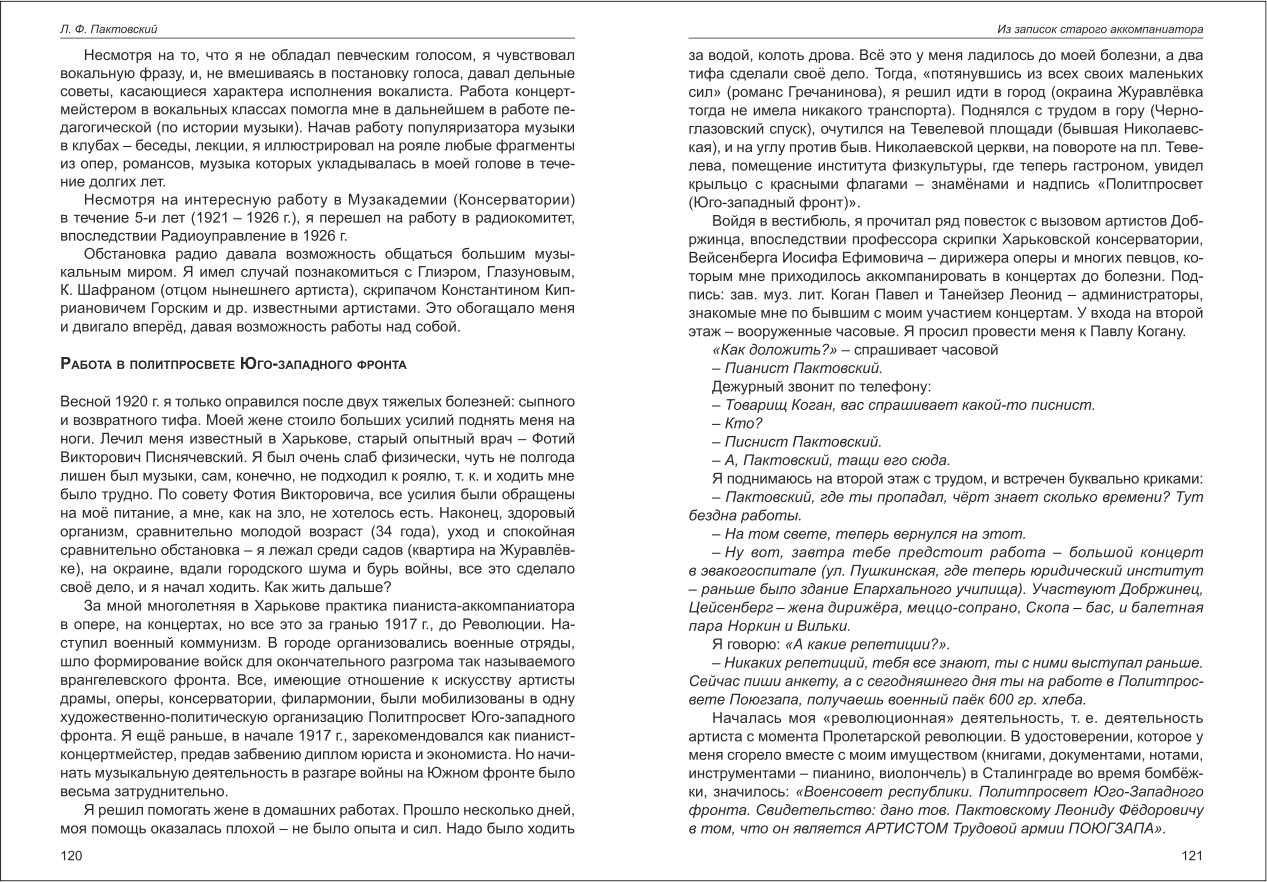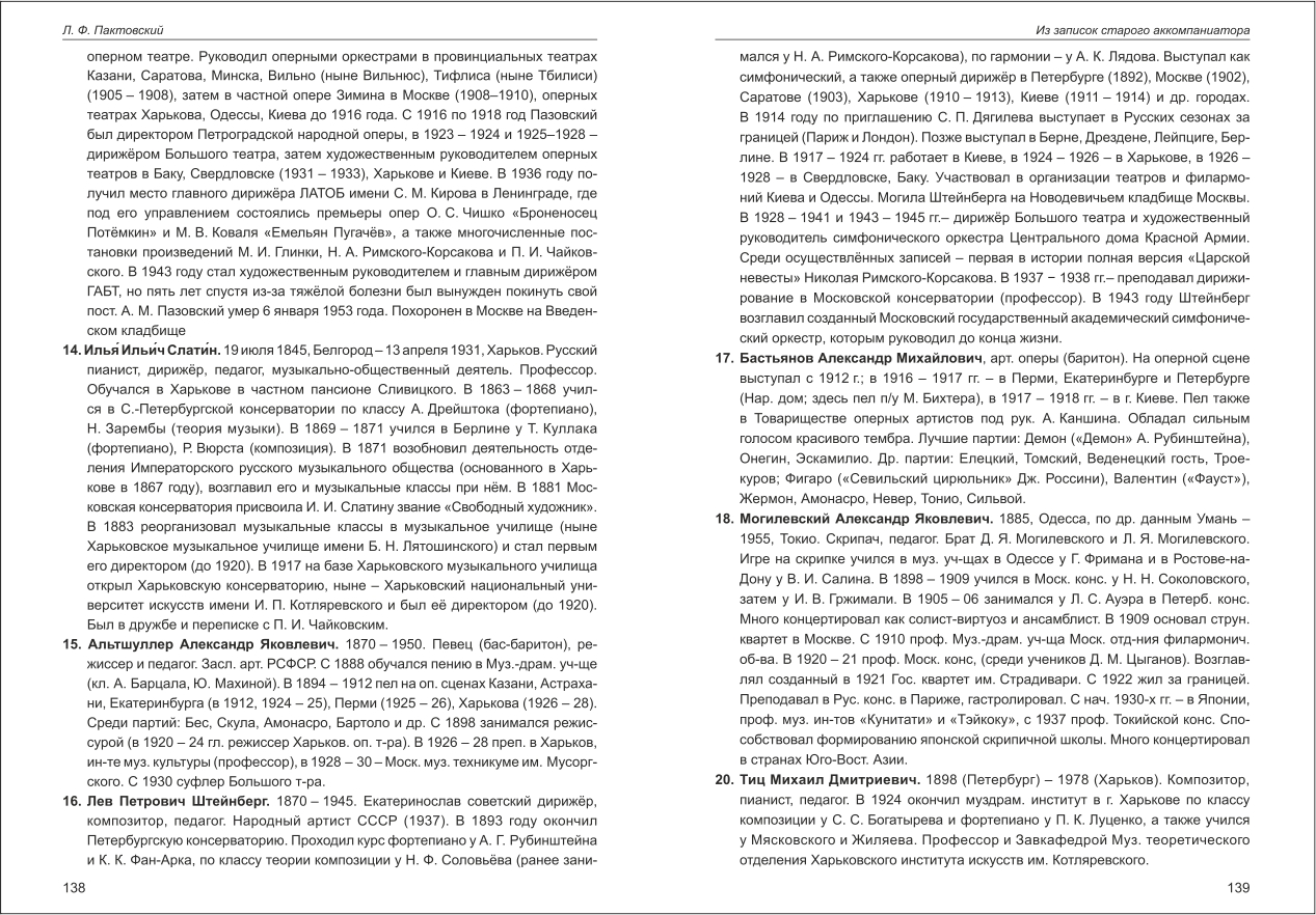 Пактовський Л. Ф. Из записок старого аккомпаниатора.