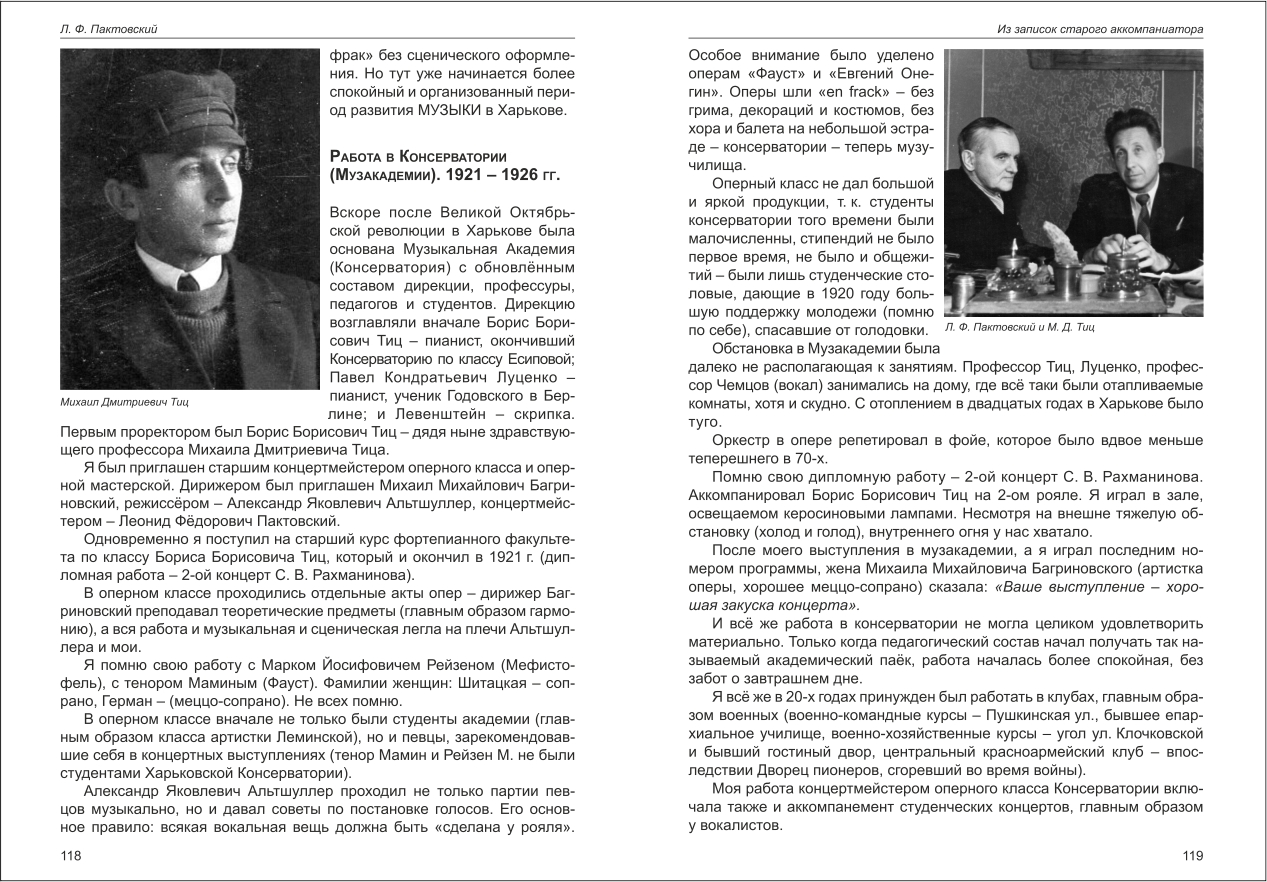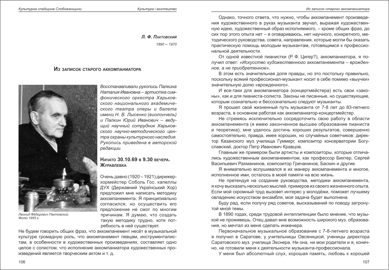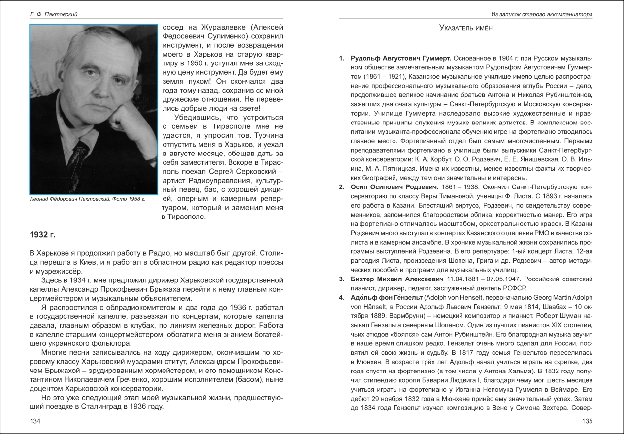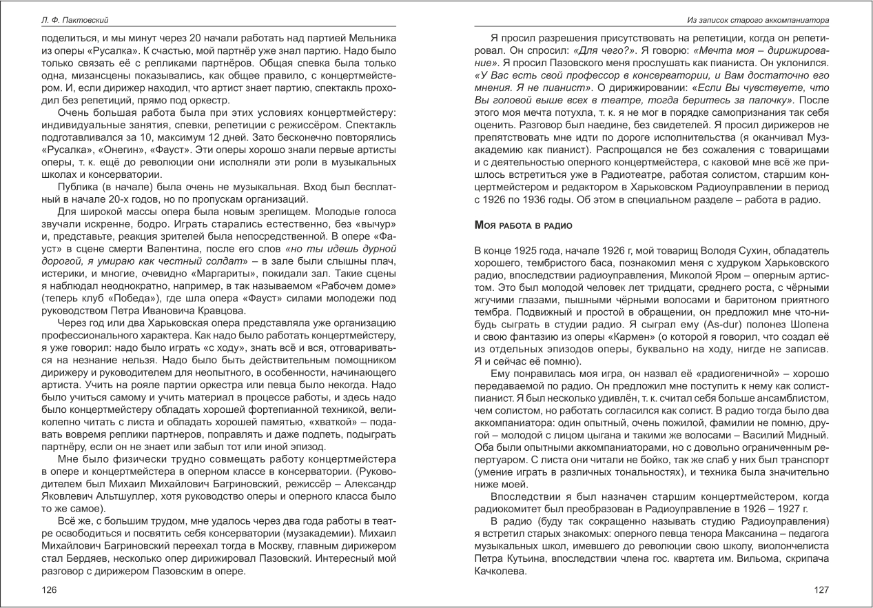 Пактовський Л. Ф. Из записок старого аккомпаниатора.