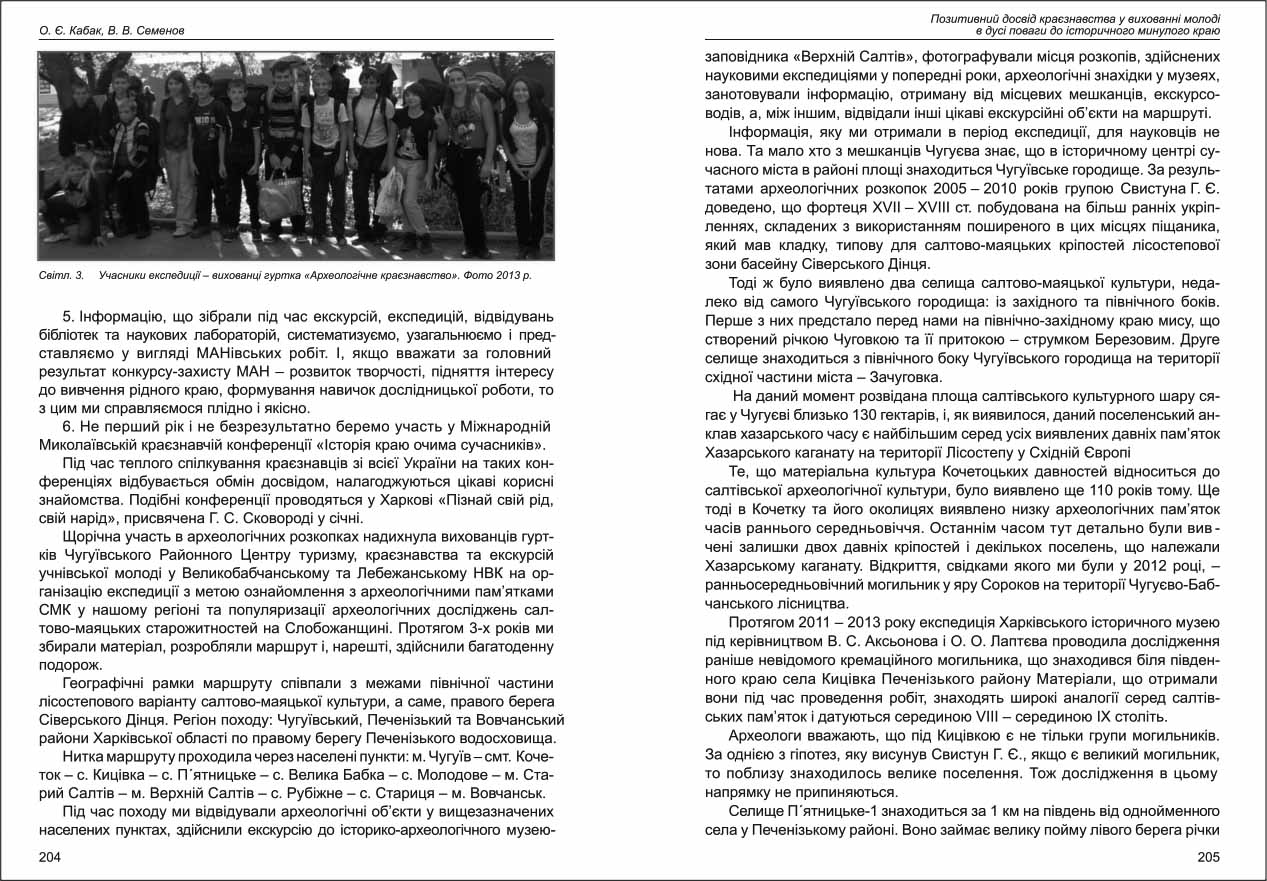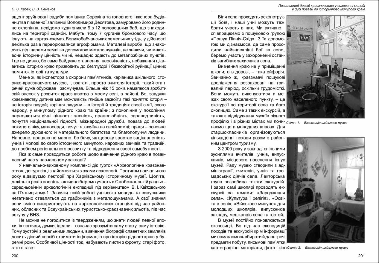 | Бібліографія: | Кабак О. Є., Семенов В. В. Позитивний досвід краєзнавства у вихованні молоді в дусі поваги до історичного минулого краю. Пам'яткознавчі погляди молодих вчених XXI ст.: зб. наук. ст. Випуск V, Харків : Курсор, 2016. C. 199–207 , іл. |