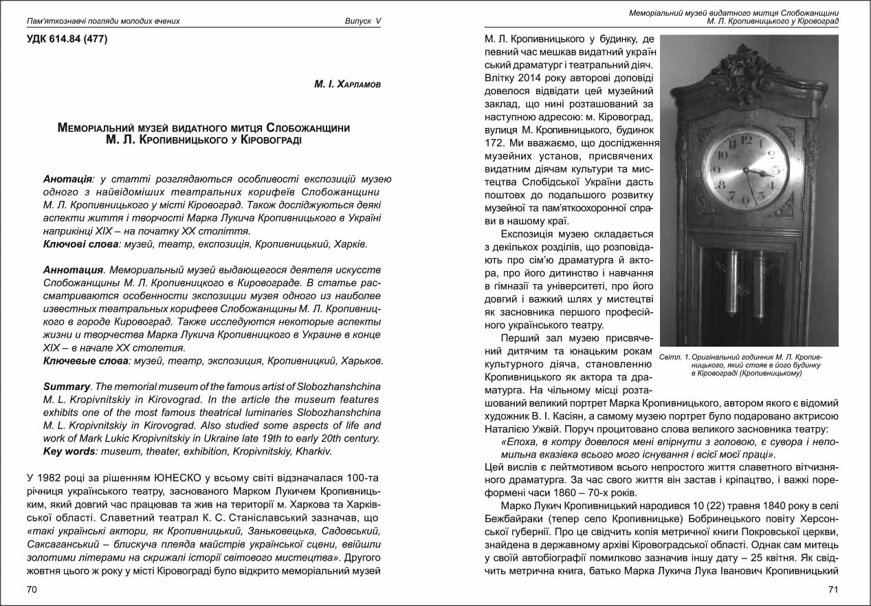 | Назва статті: | Меморіальний музей видатного митця Слобожанщини М. Л. Кропивницького у Кіровограді |