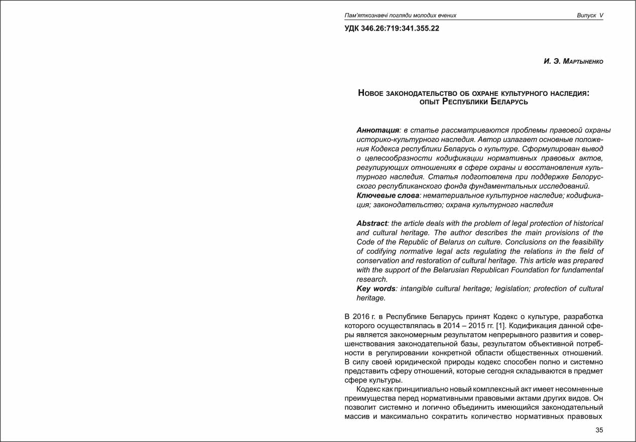 | Назва статті: | Новое законодательство об охране культурного наследия: опыт республики Беларусь |