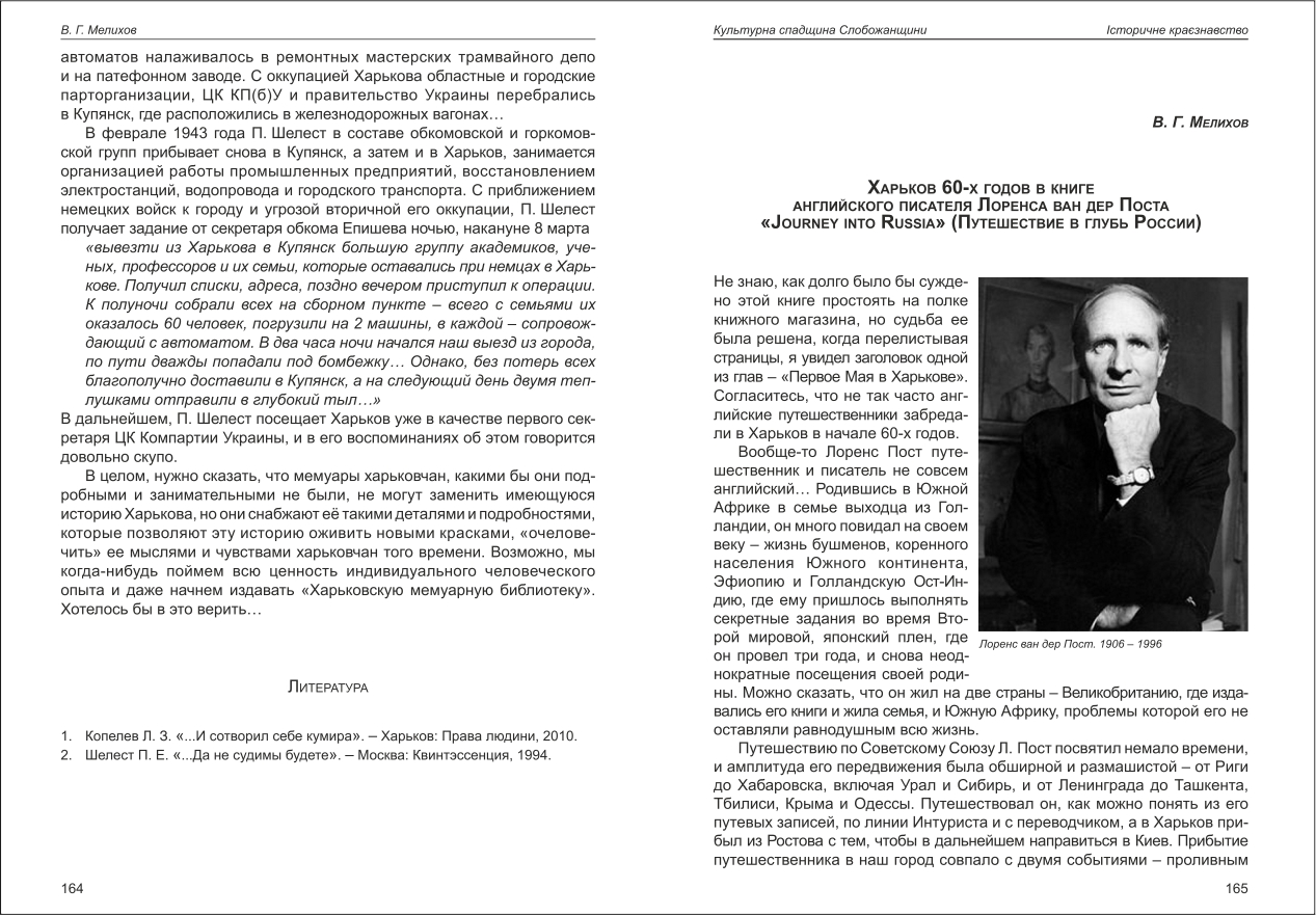 | Назва статті: | Харьков 60-х годов в книге английского писателя Лоренса ван дер Поста "Journey into Russia" (Путешествие в глубь России) |