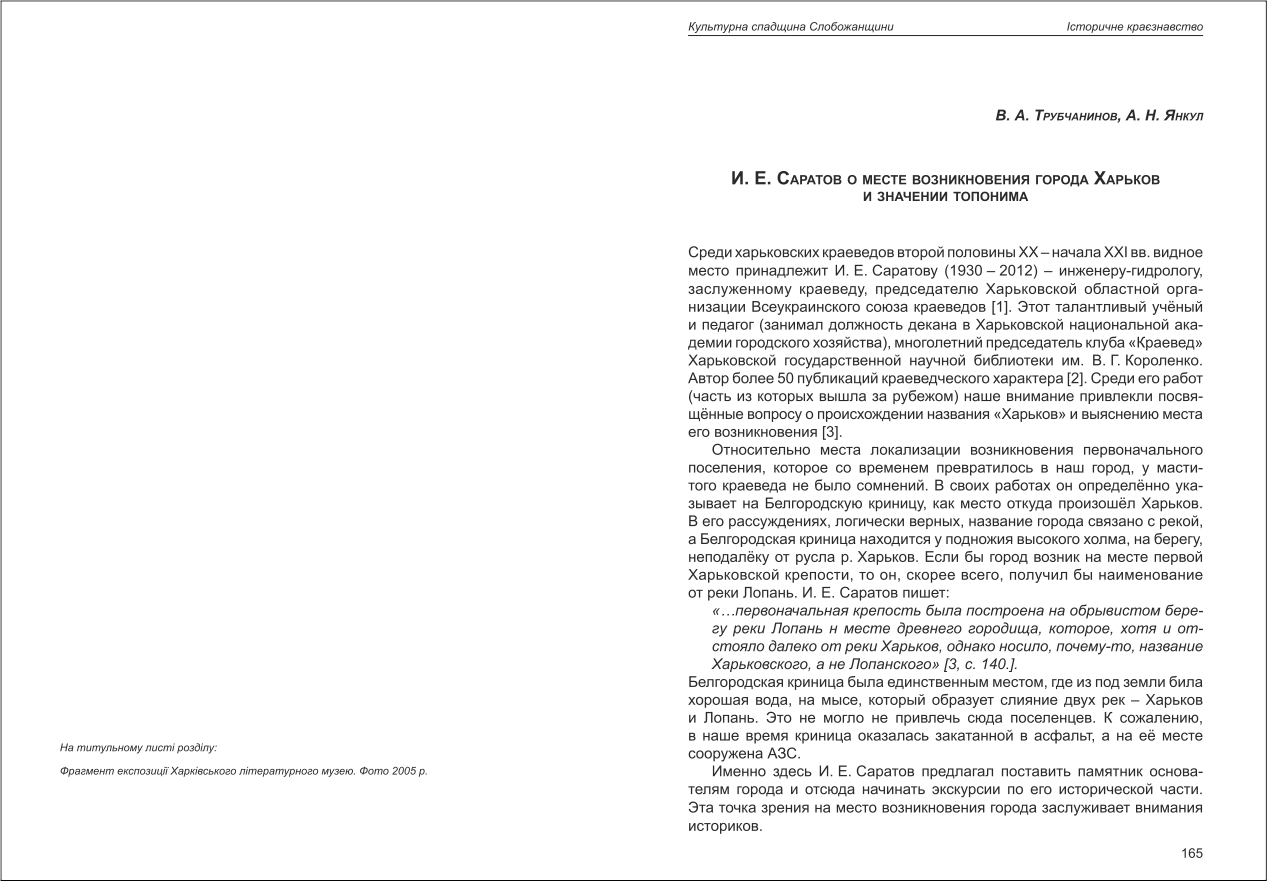 | Назва статті: | И. Е. Саратов о месте возникновения города Харьков и значении топонима |
