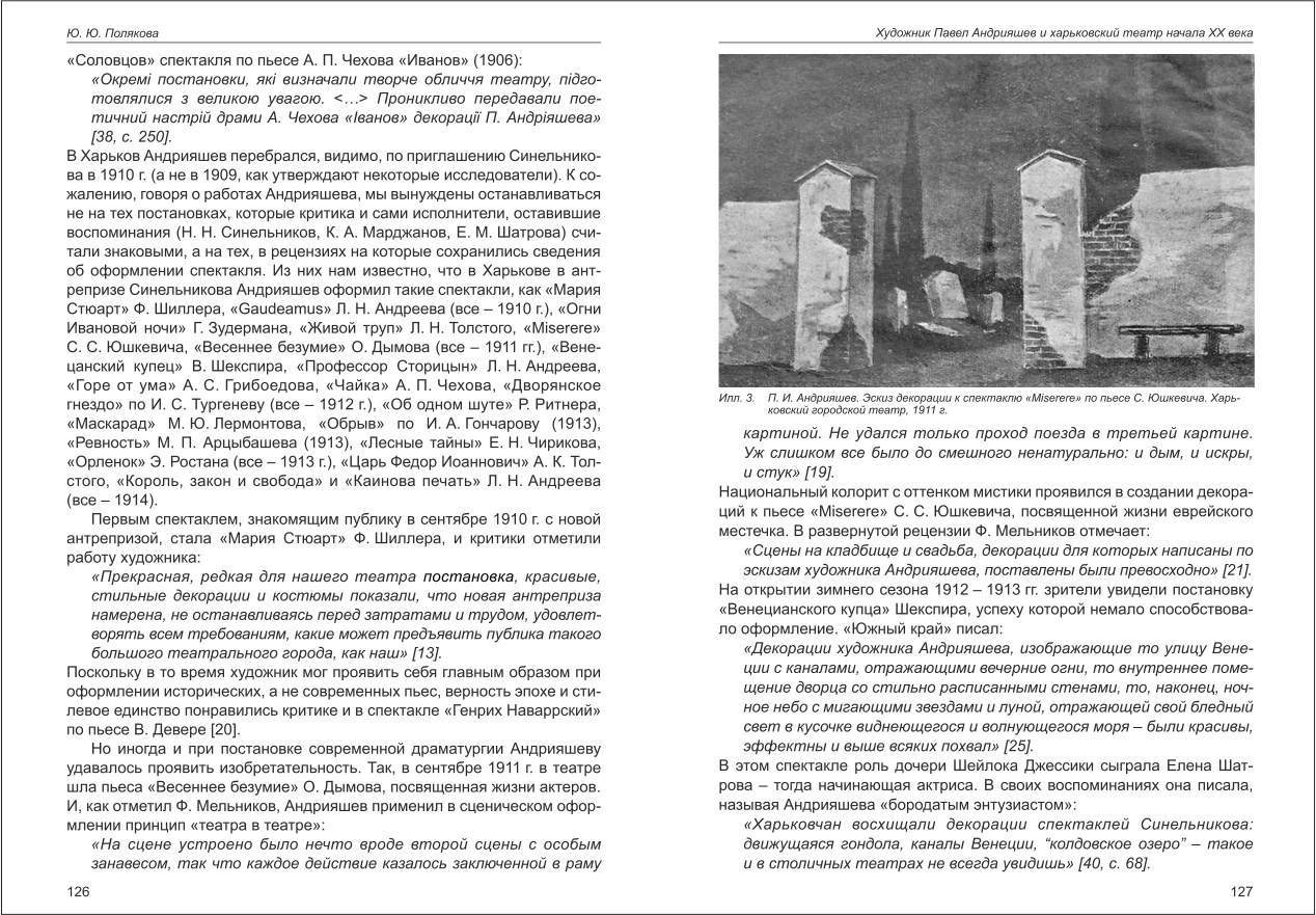 | Бібліографія: | Полякова Ю. Ю. Художник Павел Андрияшев и харьковский театр начала ХХ века. Культурна спадщина Слобожанщини: зб. наук. ст. Число 35, Харків : Курсор, 2017. C. 121–136 , іл. |