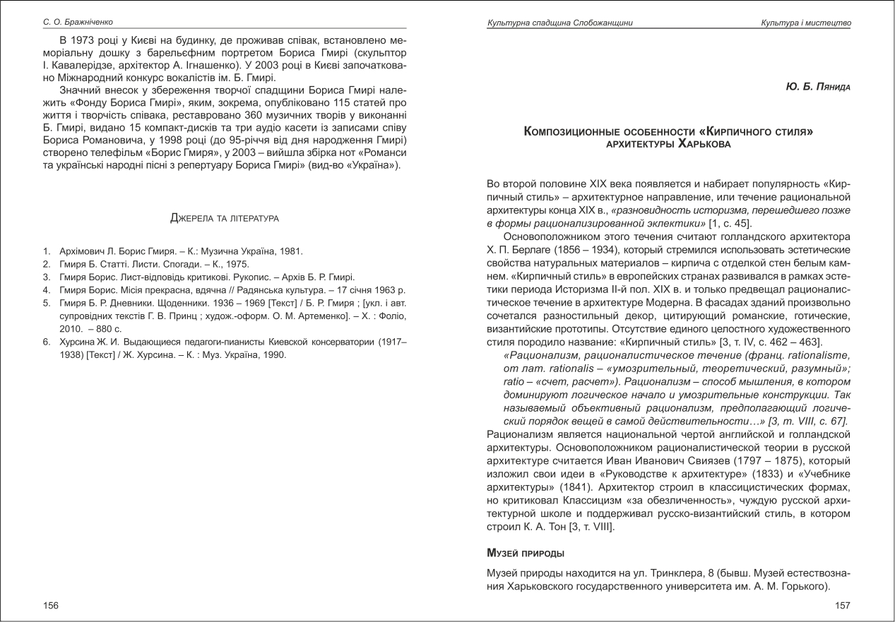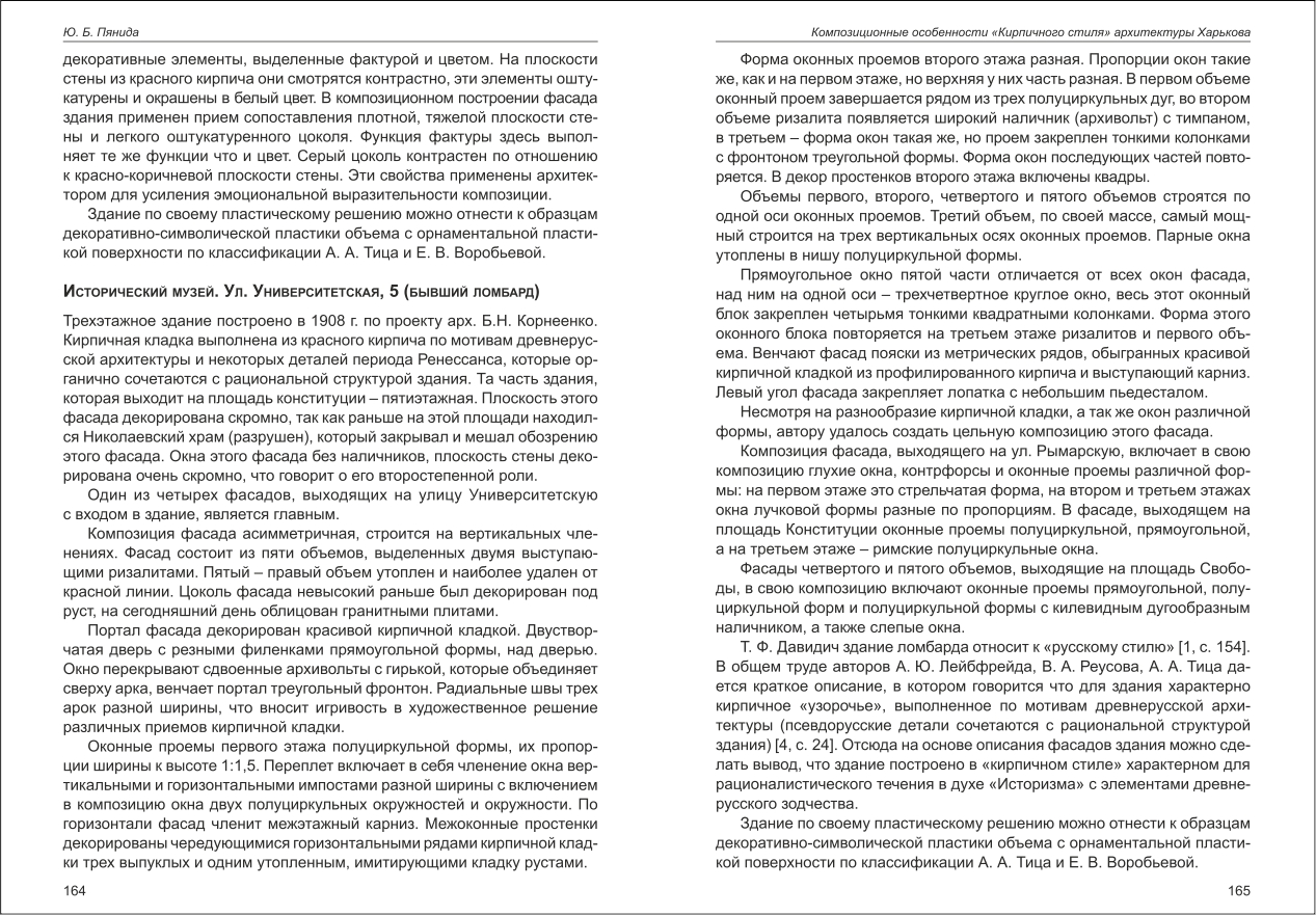 | Бібліографія: | Пянида Ю. Б. Композиционные особенности "Кирпичного стиля" архитектуры Харькова. Культурна спадщина Слобожанщини: зб. наук. ст. Число 37, Харків : Курсор, 2018. C. 157–166 , іл. |