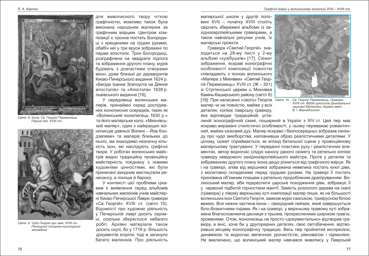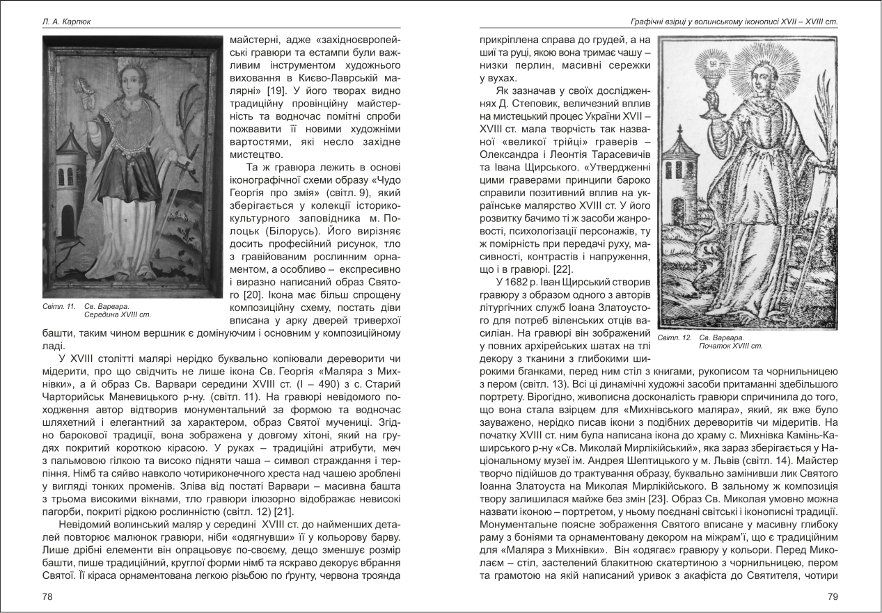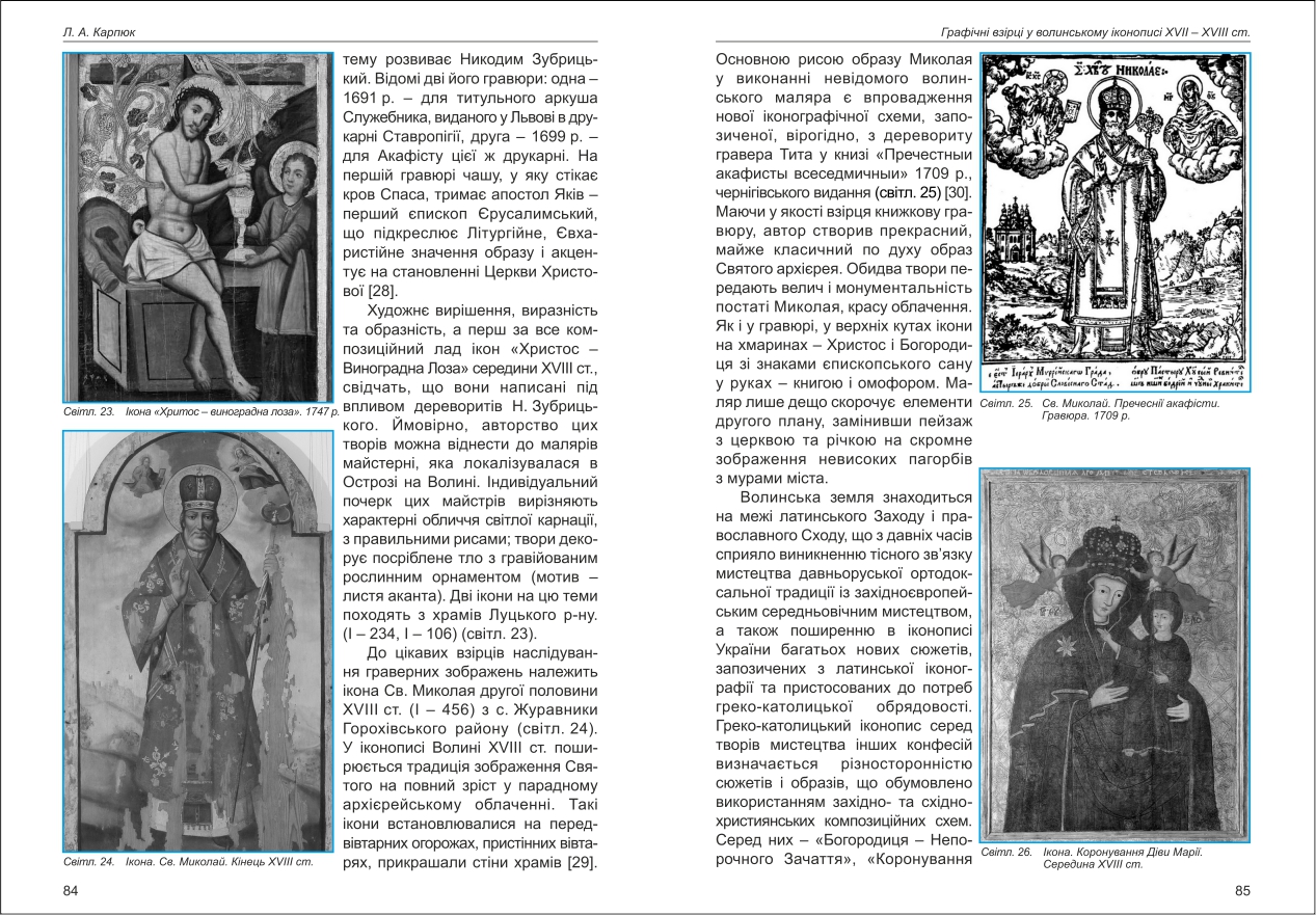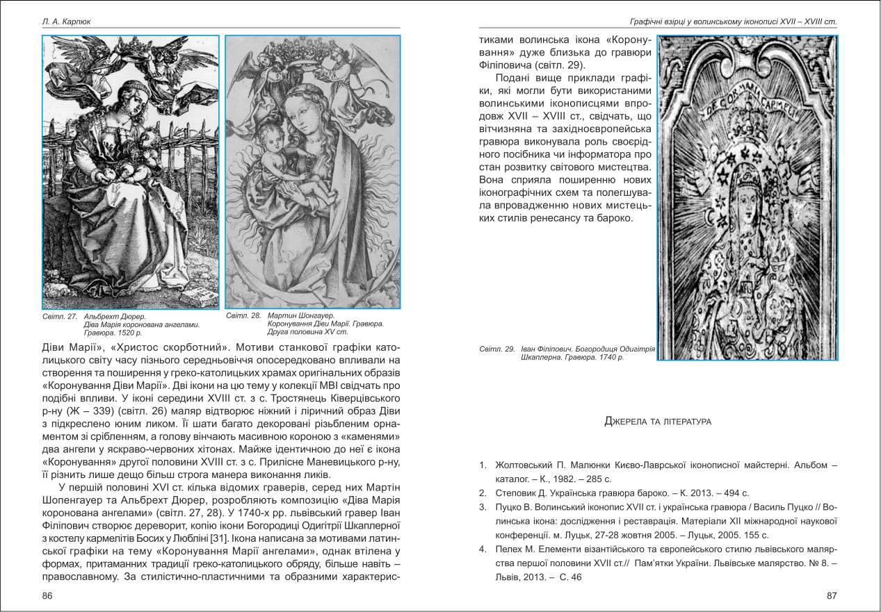 | Бібліографія: | Карпюк Л. А. Графічні взірці у волинському іконописі XVII - XVIII ст. Культурна спадщина Слобожанщини: зб. наук. ст. Число 37, Харків : Курсор, 2018. C. 70–89 , іл. |