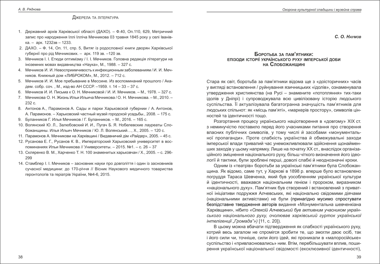 | Бібліографія: | Наумов С. О. Боротьба за пам'ятники: епізоди історії українського руху імперської доби на Слобожанщині. Культурна спадщина Слобожанщини: зб. наук. ст. Число 37, Харків : Курсор, 2018. C. 39–45 |