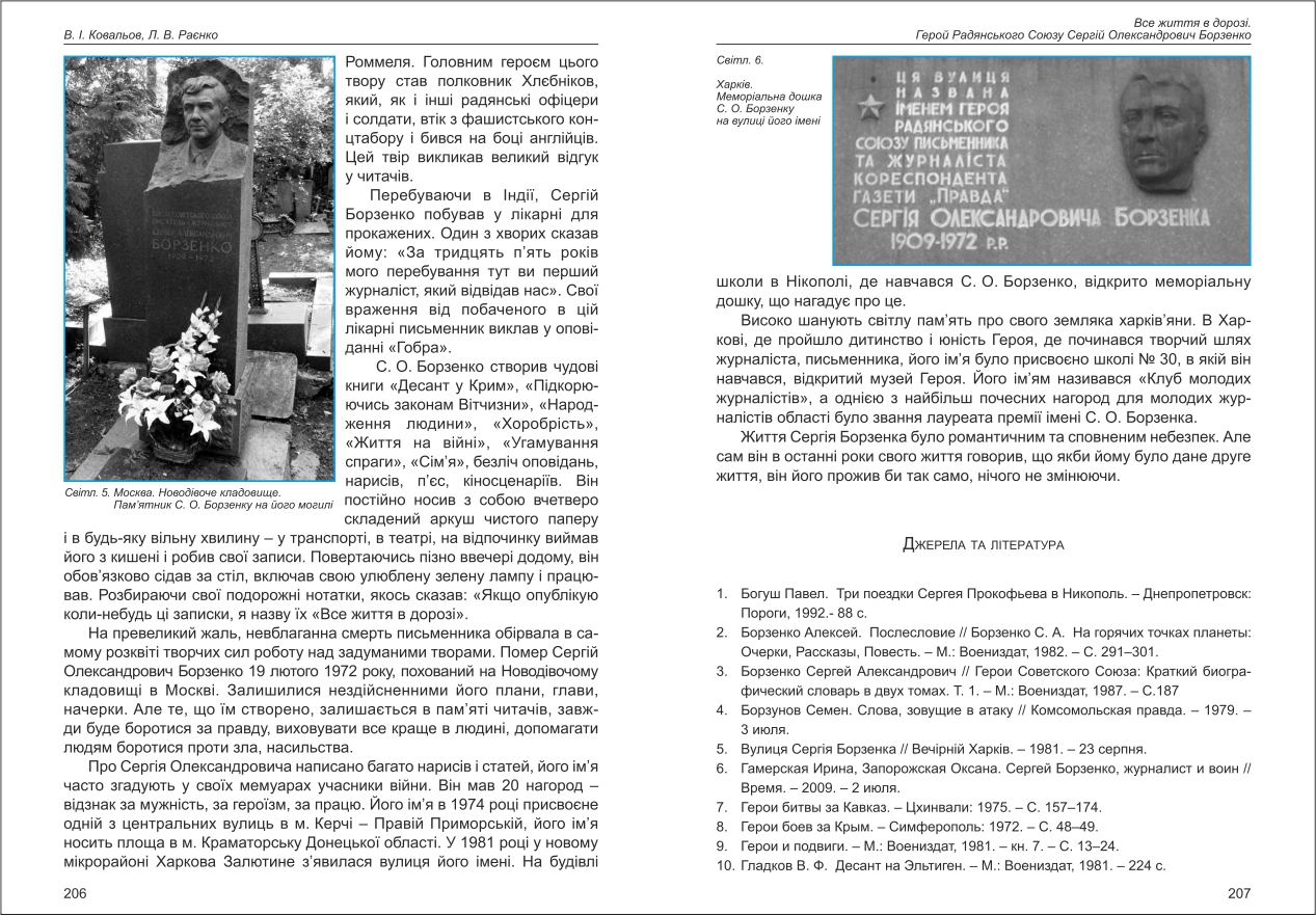 | Бібліографія: | Ковальов В. І., Раєнко Л. В. Все життя в дорозі. Герой Радянського Союзу Сергій Олександрович Борзенко. Культурна спадщина Слобожанщини: зб. наук. ст. Число 38, Харків : Курсор, 2018. C. 199–208 , іл. |