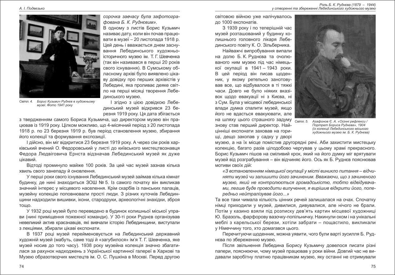| Назва статті: | Роль Б. К. Руднєва (1879 - 1944) у створенні та збереженні Лебединського художнього музею |