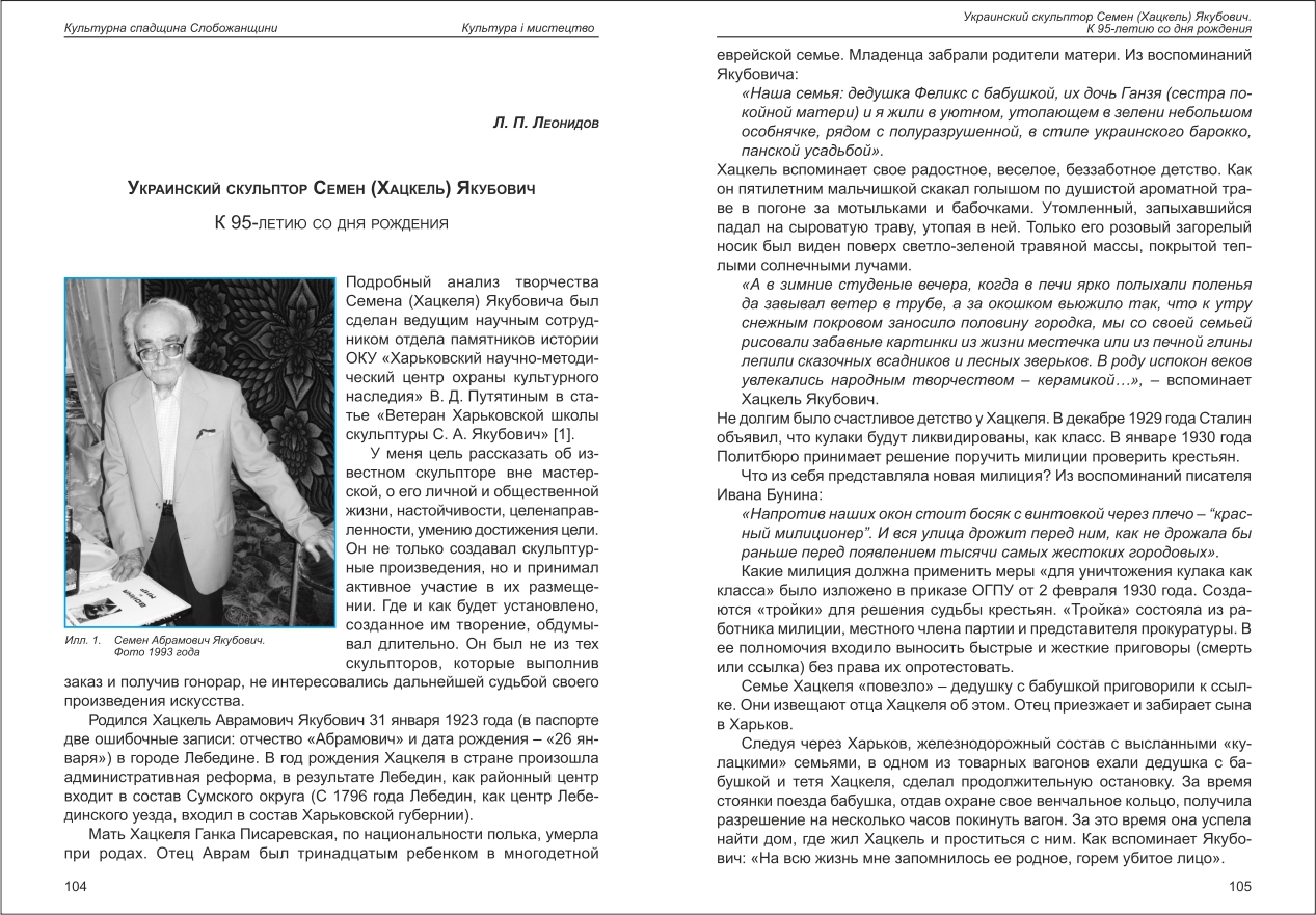 | Назва статті: | Украинский скульптор Семен (Хацкель) Якубович. К 95-летию со дня роджения |