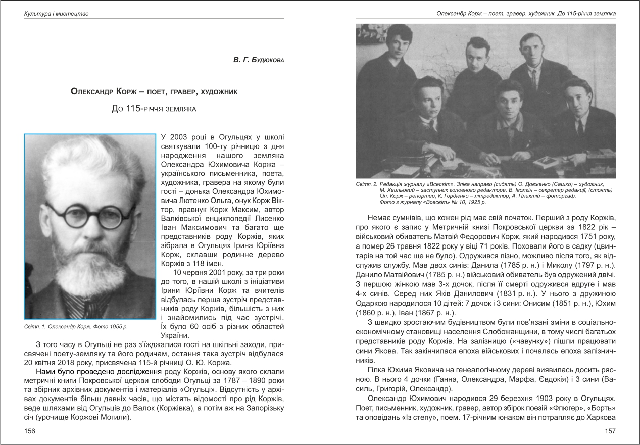 | Назва статті: | Олександр Корж - поет, гравер, художник. До 115-річчя земляка |