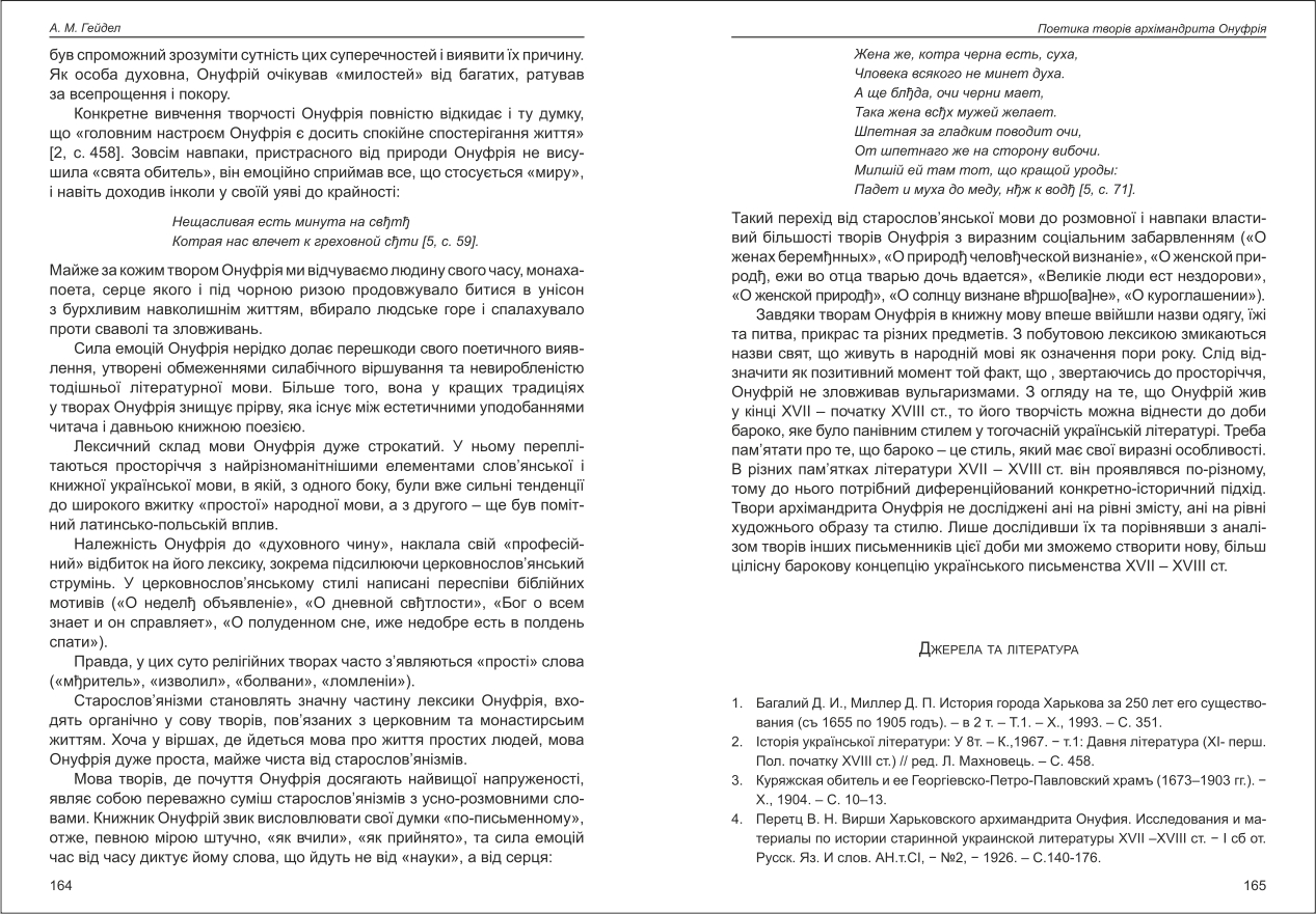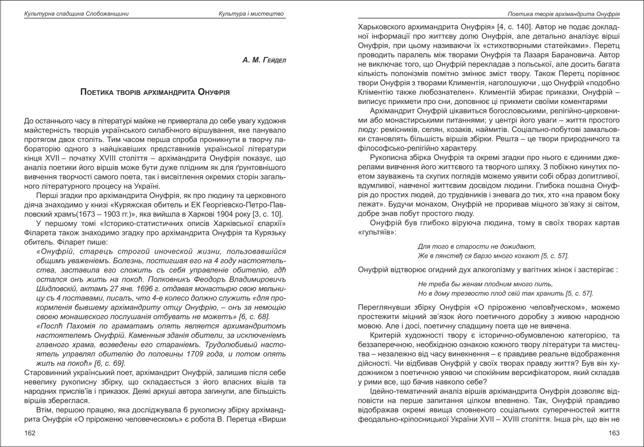| Бібліографія: | Гейдел А. М. Поетика творів архімандрита Онуфрія. Культурна спадщина Слобожанщини: зб. наук. ст. Число 41, Харків : Курсор, 2019. C. 162–166 |