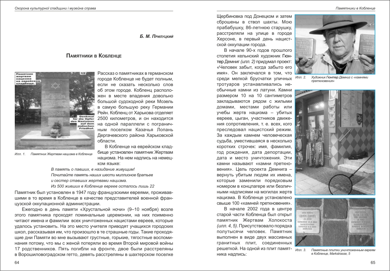 | Бібліографія: | Прилуцький Б. М. Памятники в Кобленце. Культурна спадщина Слобожанщини: зб. наук. ст. Число 41, Харків : Курсор, 2019. C. 64–69 , іл. |