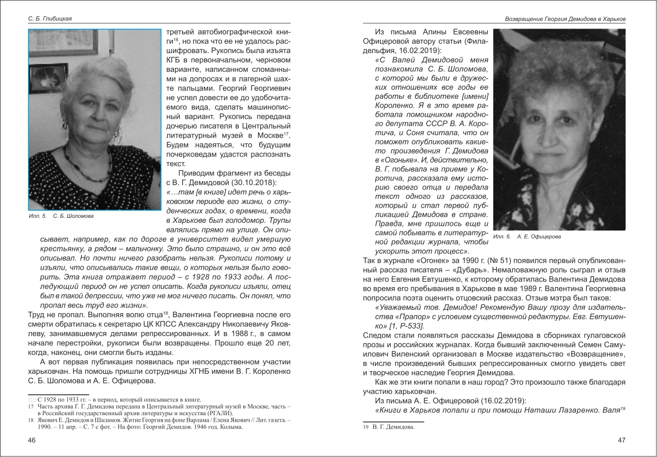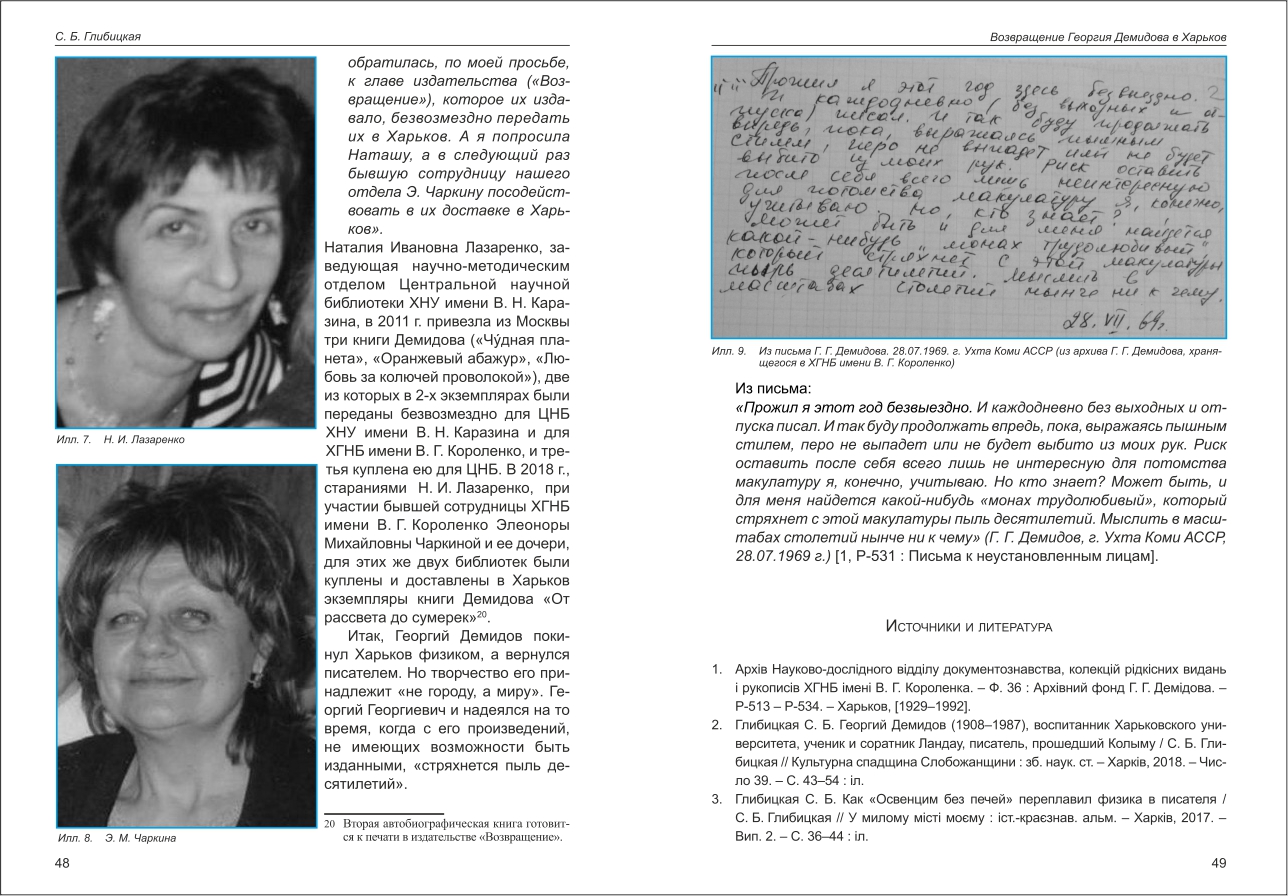 Особистість: Демидов Георгій Георгійович, письм. Особистість: Лазаренко Наталія Іванівна Особистість: Офіцерова Аліна Овсіївна |