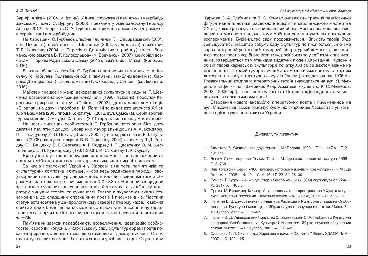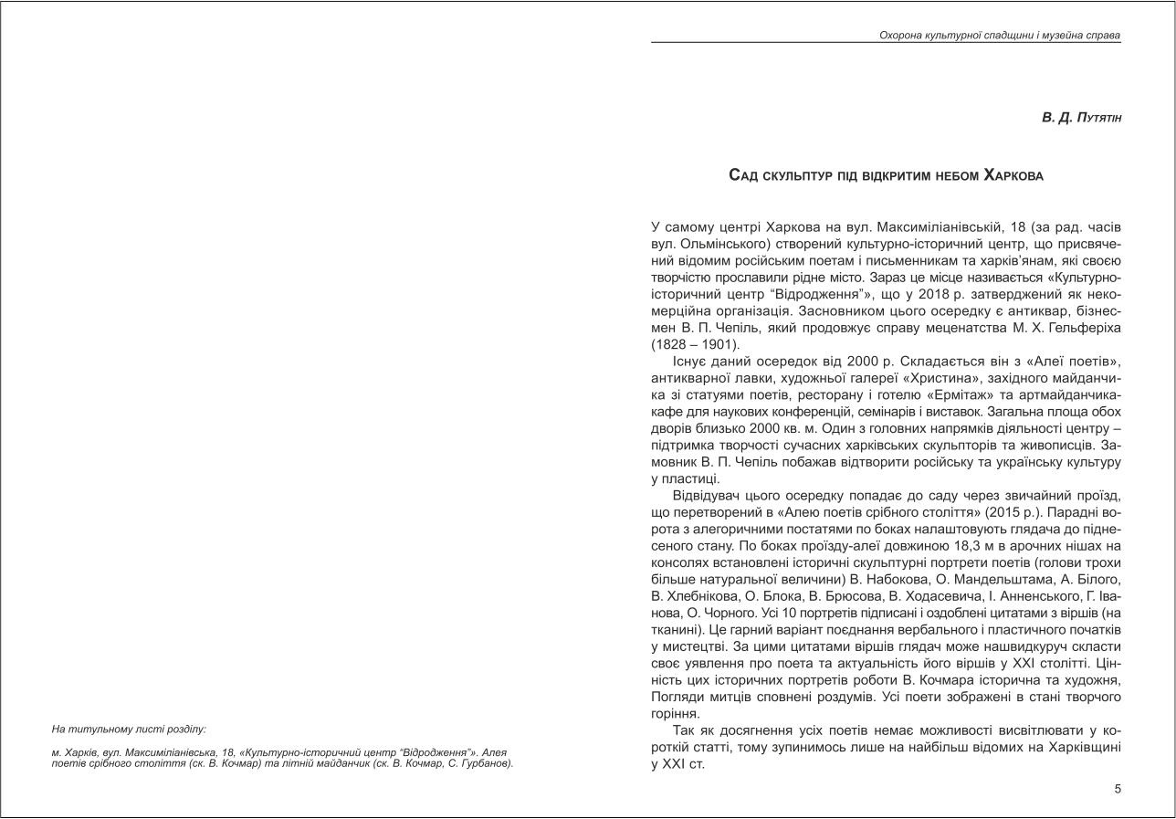Путятін В. Д. Сад поезій під відкритим небом Харкова.
