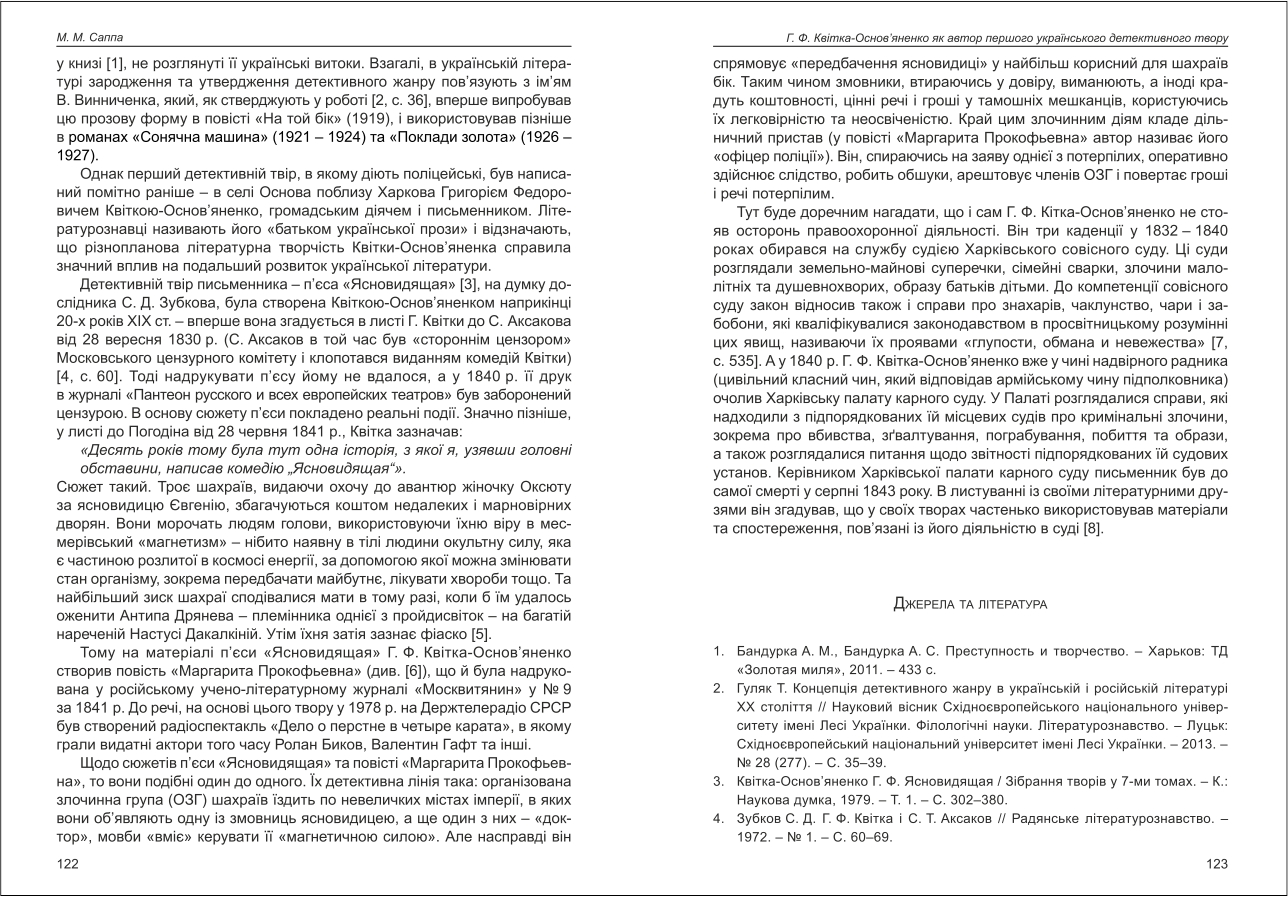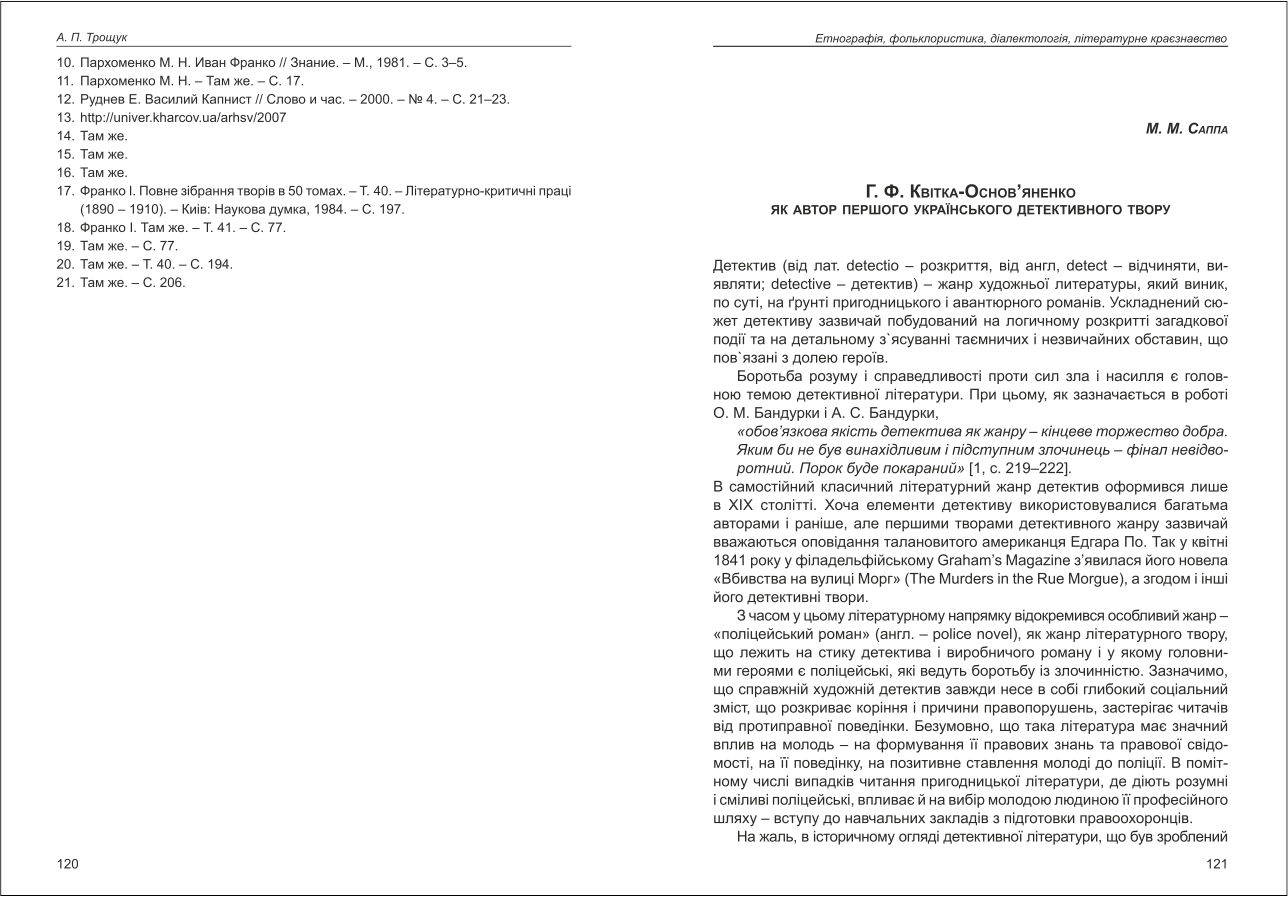 | Назва статті: | Г. Ф. Квітка-Основ'яненко як автор першого українського детективного твору |