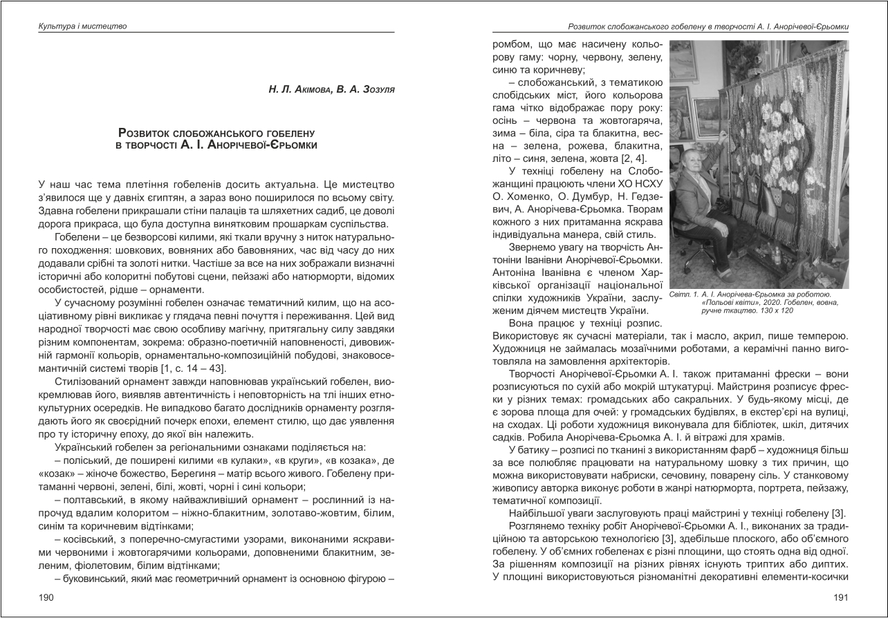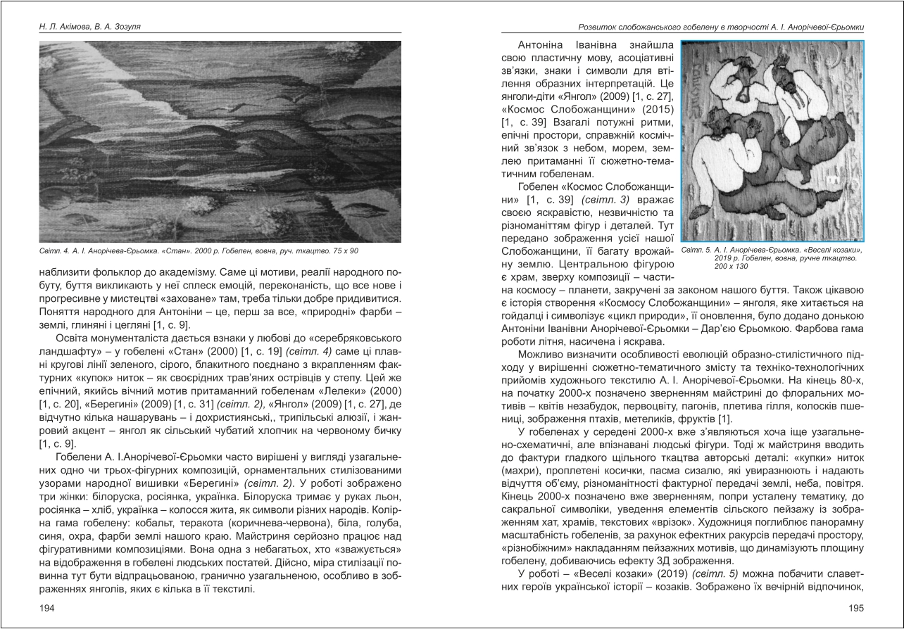 | Назва статті: | Розвиток слобожанського гобелену в творчості А. І. Анорічевої-Єрьомки |
