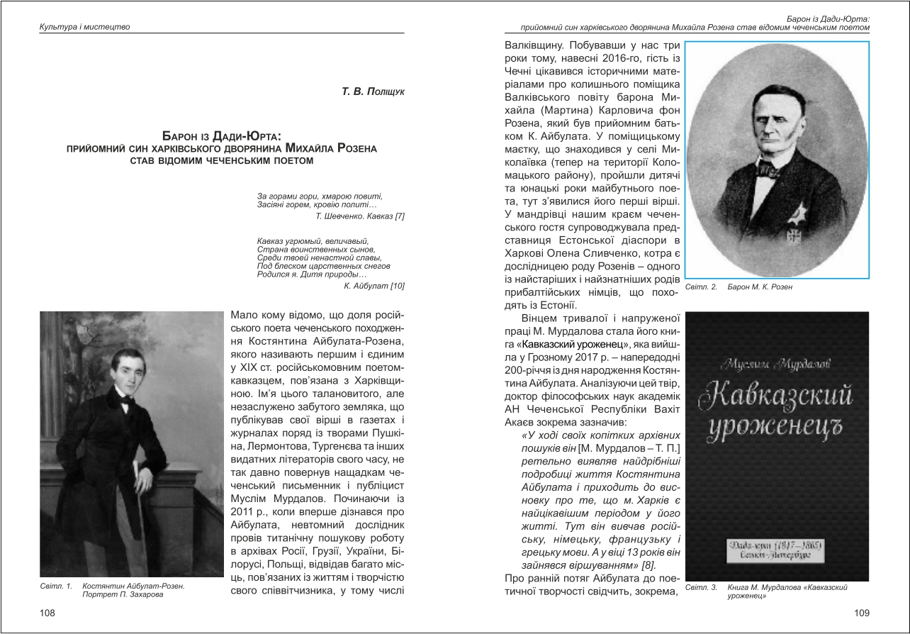 | Назва статті: | Барон із Дади-Юрта: прийомний син харківського дворянина Михайла Розена став відомим чеченським поетом |