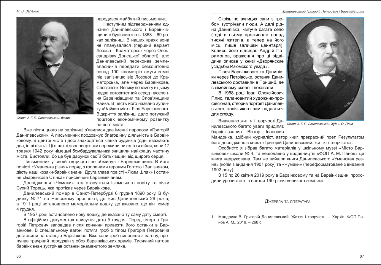 | Бібліографія: | Зелений М. В. Данилевський Григорій Петрович і Барвінківщина. Культурна спадщина Слобожанщини: зб. наук. ст. Число 44, Харків : Курсор, 2020. C. 85–87 , іл. |
