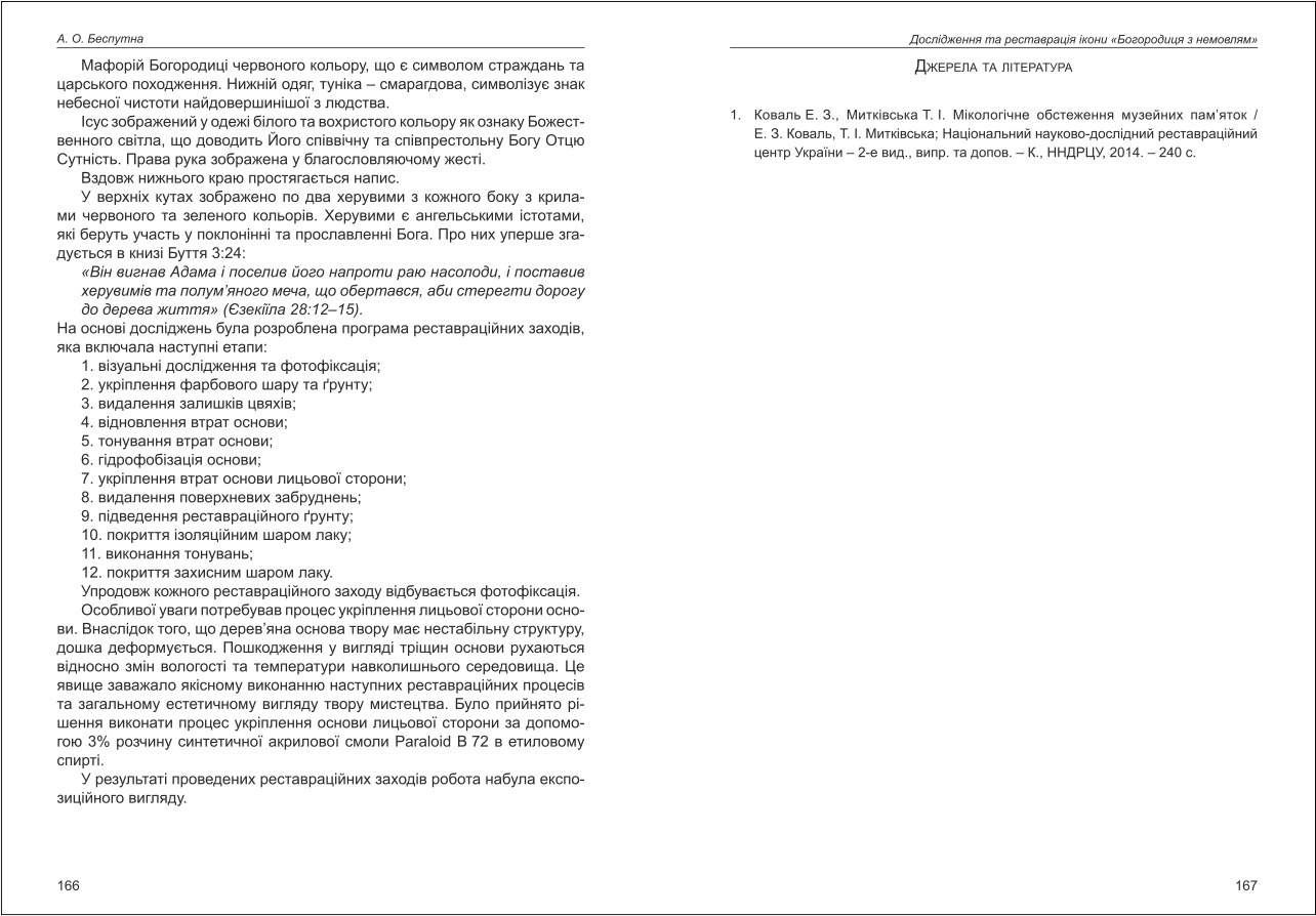 | Назва статті: | Дослідження та реставрація ікони "Богородиця з немовлям" |