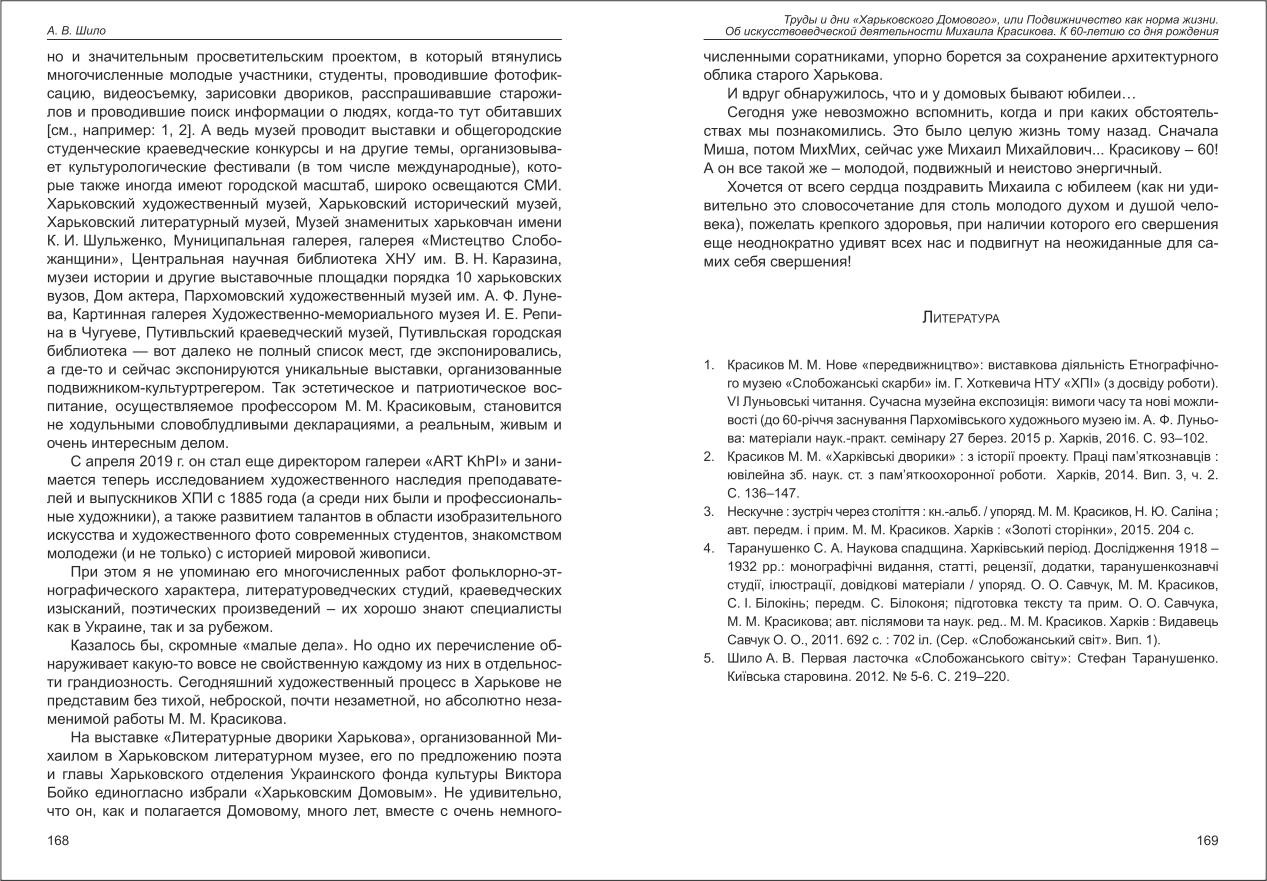| Назва статті: | Труды и дни "Харьковского Домового", или Подвижничество как норма жизни. Об искусствоведческой деятельности Михаила Красикова. К 60-летию со дня рождения |