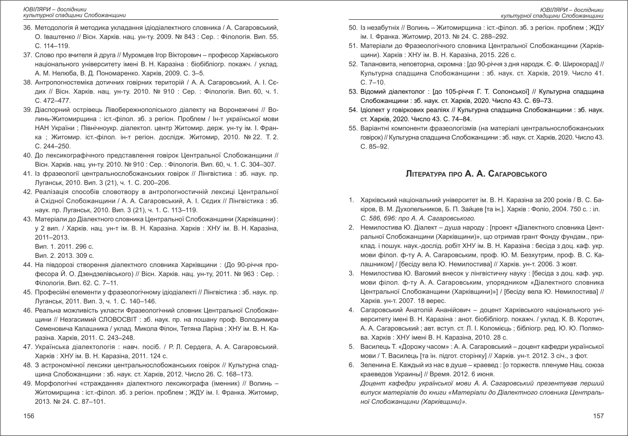 | Бібліографія: | Глибицька С. Б. Основні праці кандидата філологічних наук А. А. Сагаровського. Література про А. А. Сагаровського. Культурна спадщина Слобожанщини: зб. наук. ст. Число 46, Харків : Курсор, 2020. C. 153–158 |