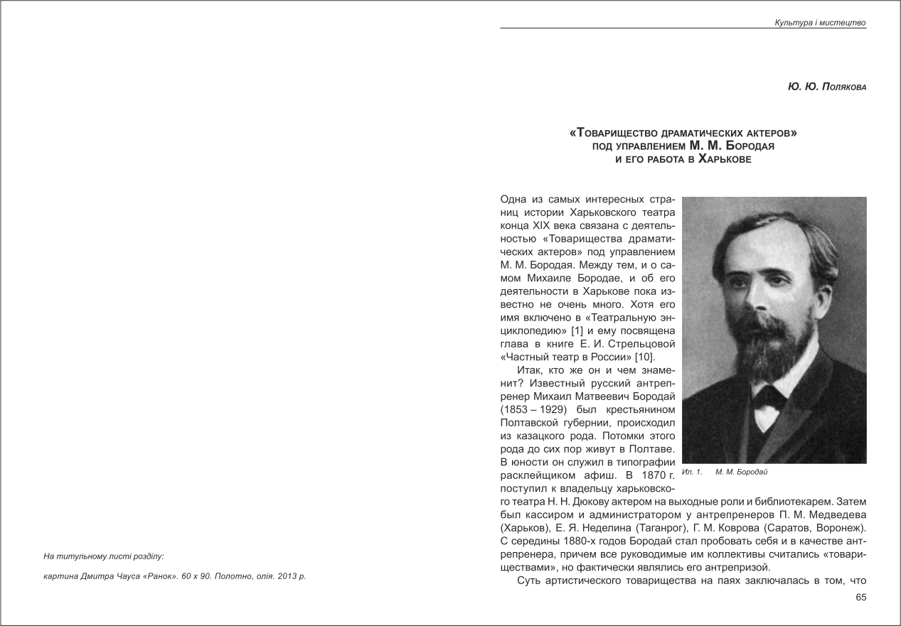 | Назва статті: | «Товарищество драматических актёров» под управлением М. М. Бородая и его работа в Харькове |