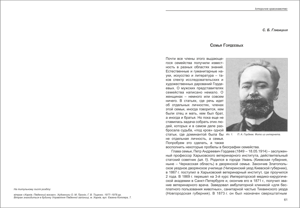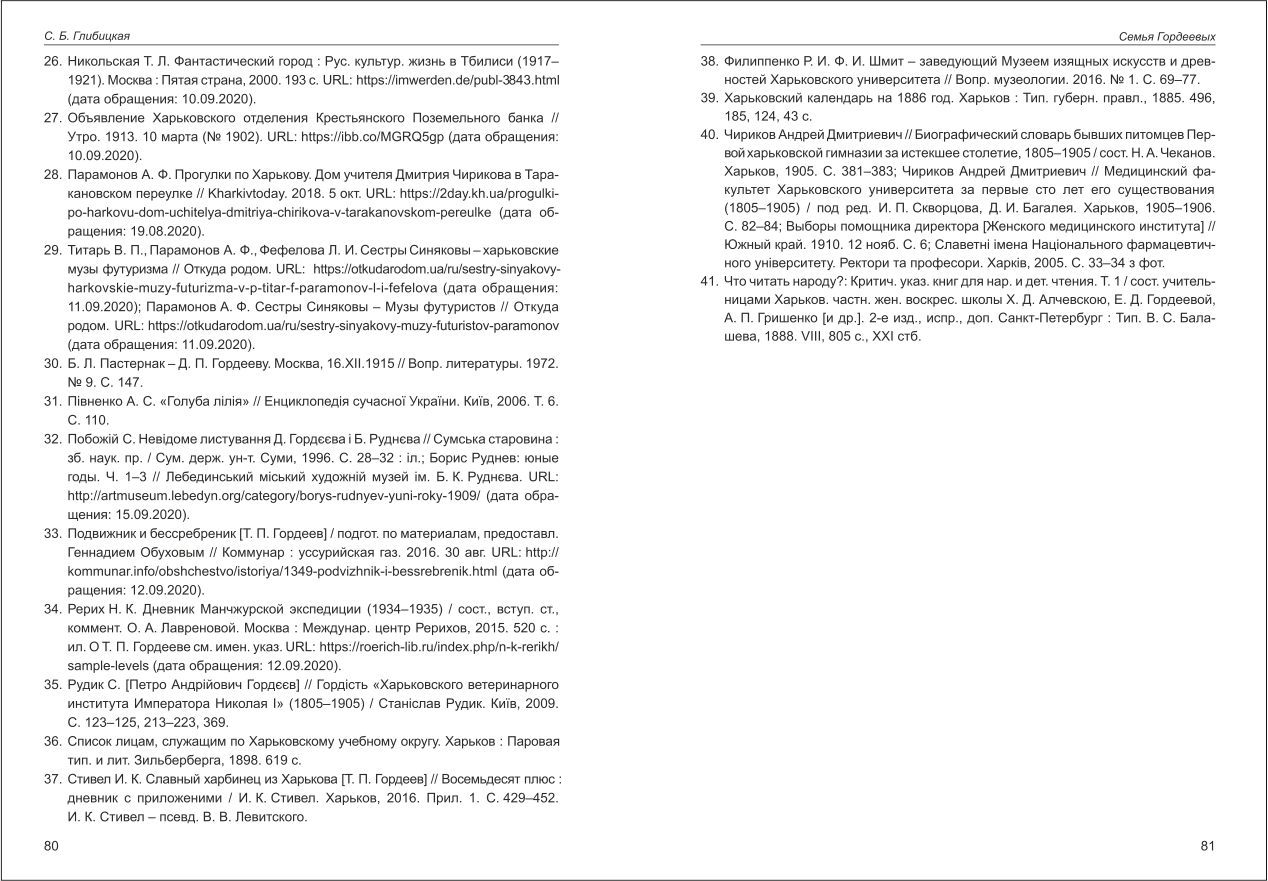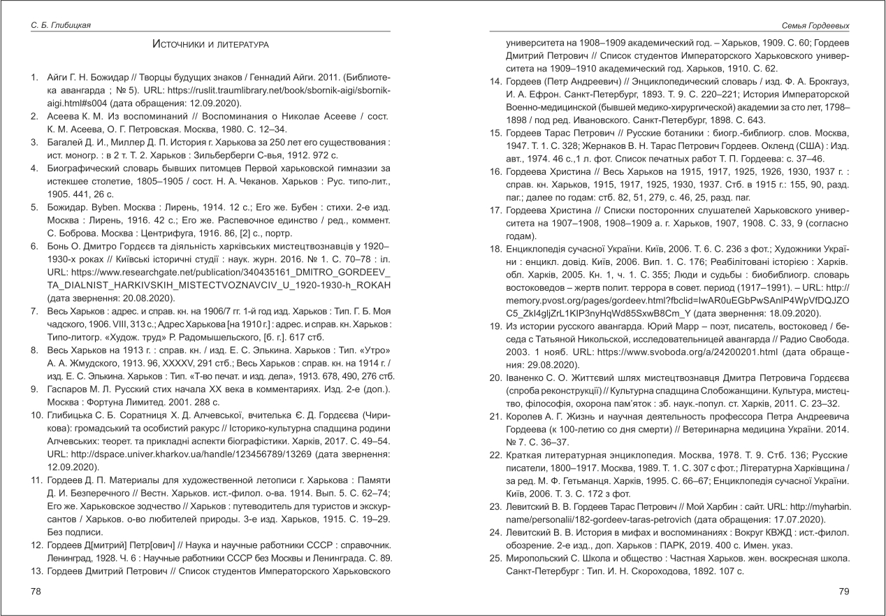 | Бібліографія: | Глибицька С. Б. Семья Гордеевых. Культурна спадщина Слобожанщини: зб. наук. ст. Число 47, Харків : Курсор, 2020. C. 61–81 , іл. |