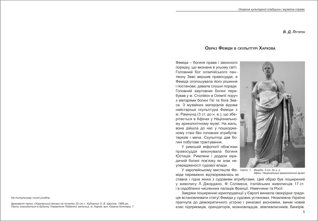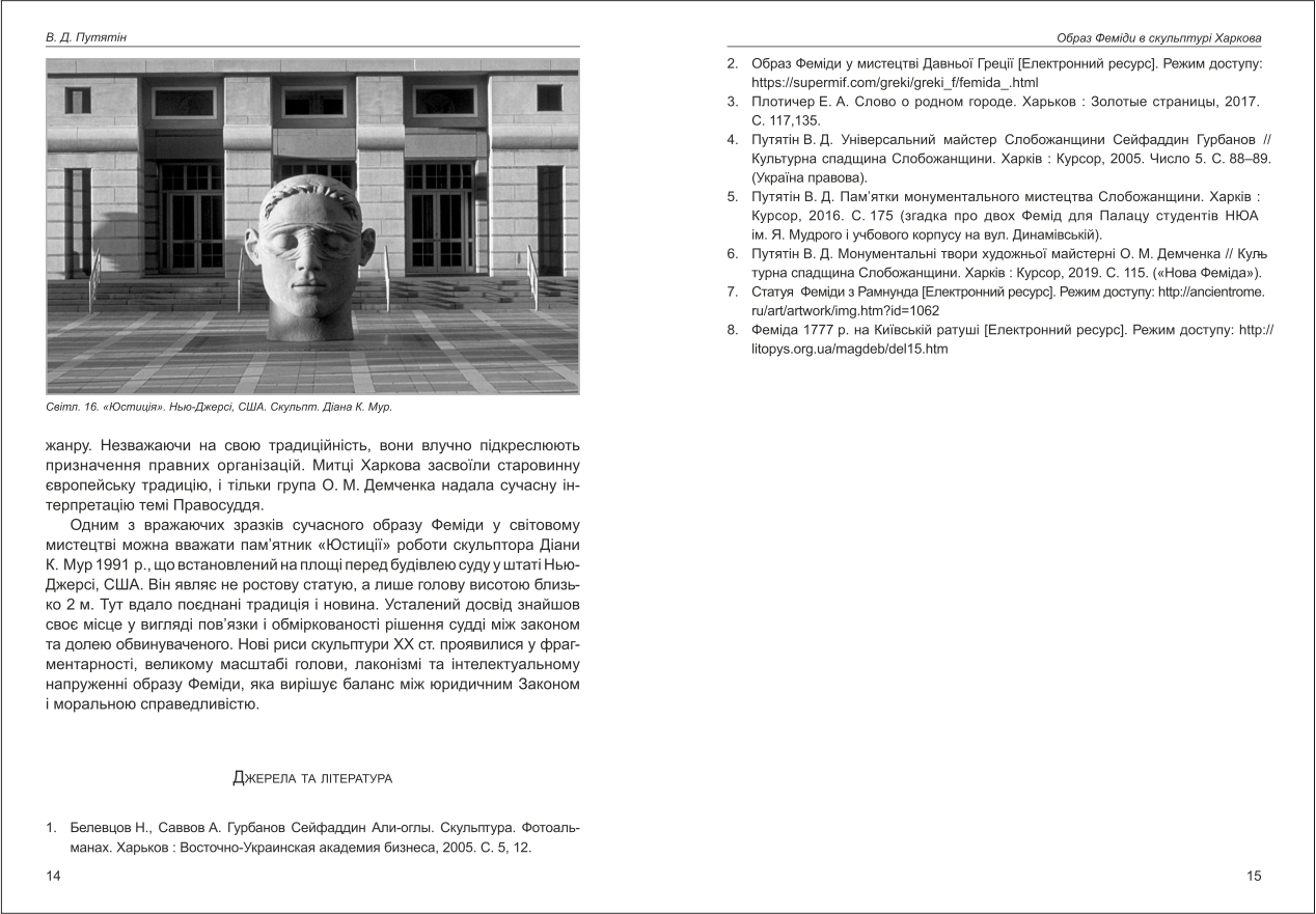 | Бібліографія: | Путятін В. Д. Образ Феміди в скульптурі Харкова. Культурна спадщина Слобожанщини: зб. наук. ст. Число 47, Харків : Курсор, 2020. C. 5–15 , іл. |