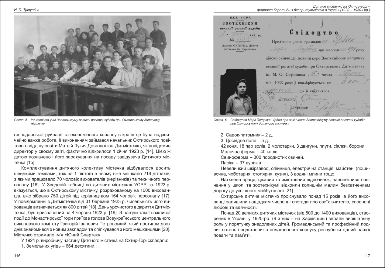 | Бібліографія: | Тріпутіна Н. П. Дитяче містечко на Охтир-горі - форпост боротьби з безпритульністю в Україні (1920-1930-і рр.). Культурна спадщина Слобожанщини: зб. наук. ст. Число 48, Харків : Курсор, 2021. C. 112–118 , іл. |