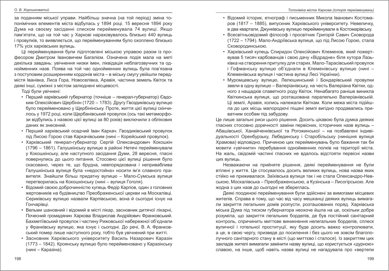 | Бібліографія: | Хорошковатий О. В. Топоніміка міста Харкова (історія перейменувань). Культурна спадщина Слобожанщини: зб. наук. ст. Число 48, Харків : Курсор, 2021. C. 197–206 |