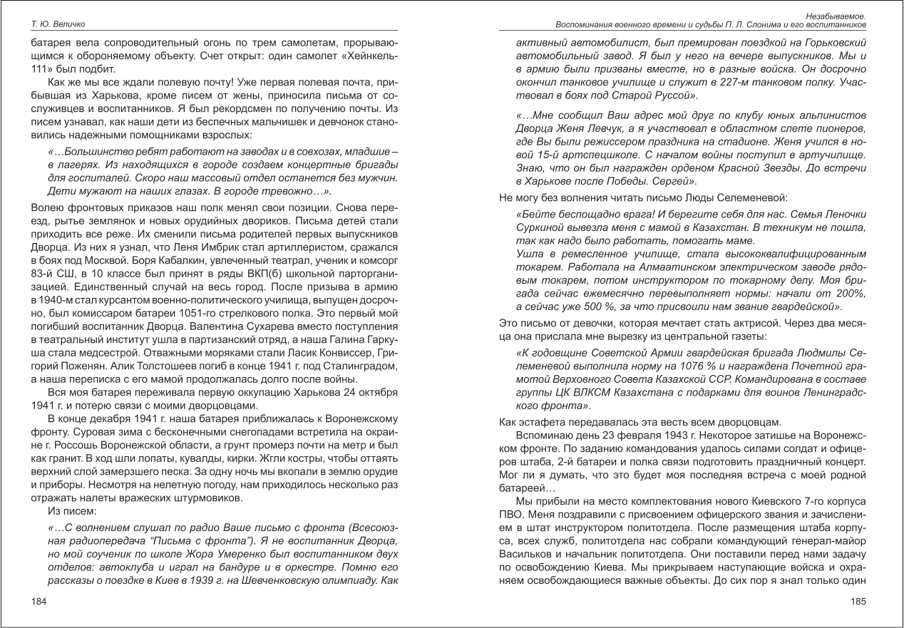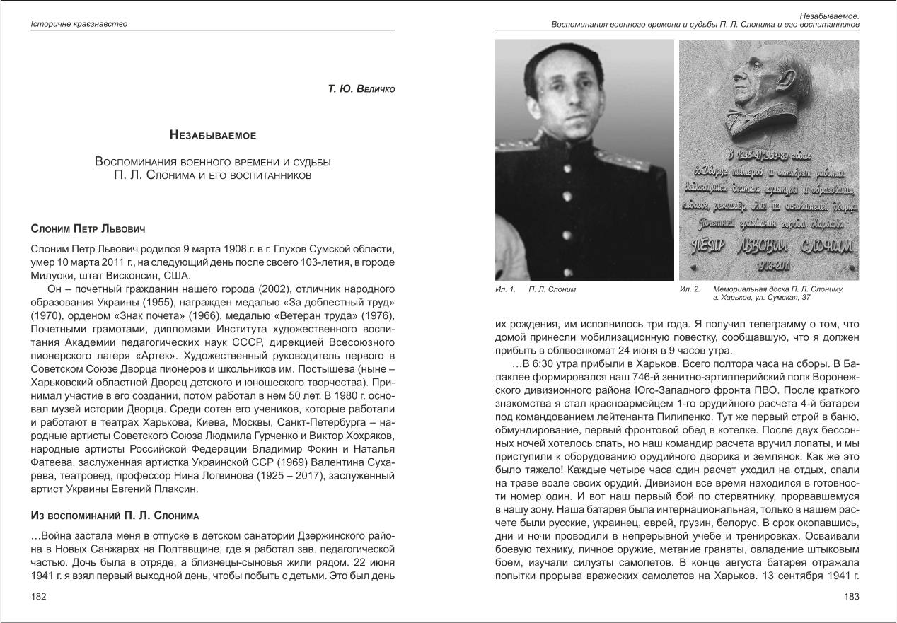 | Назва статті: | Незабываемое. Воспоминания военного времени и судьбы П. Л. Слонима и его воспитанников |