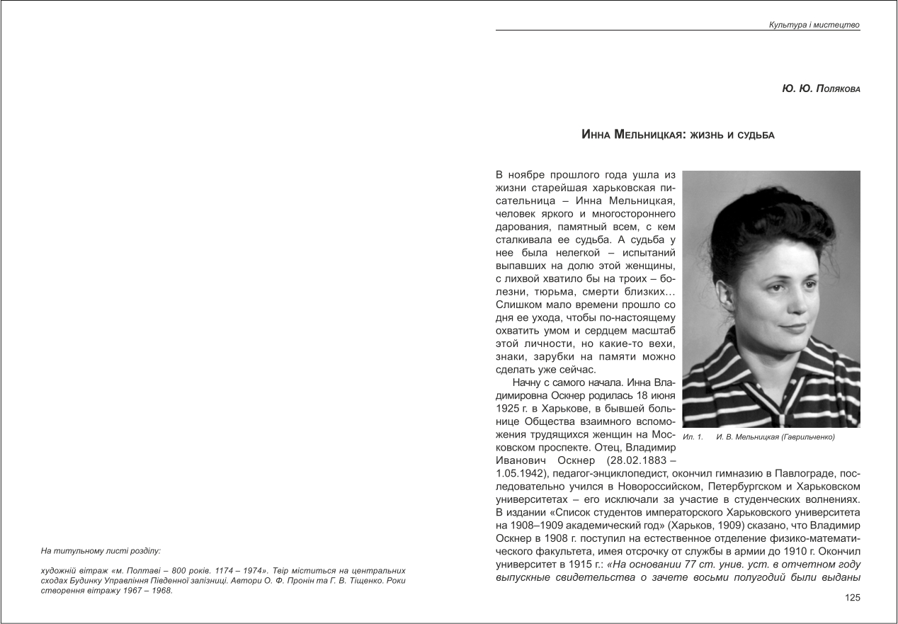| Назва статті: | Инна Мельницкая: жизнь и судьба |