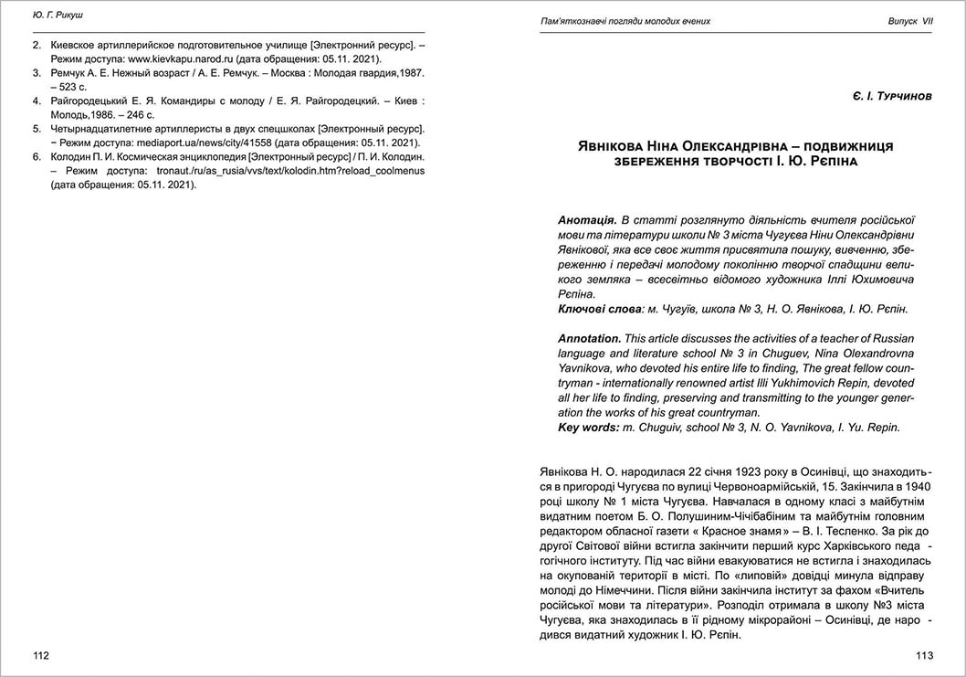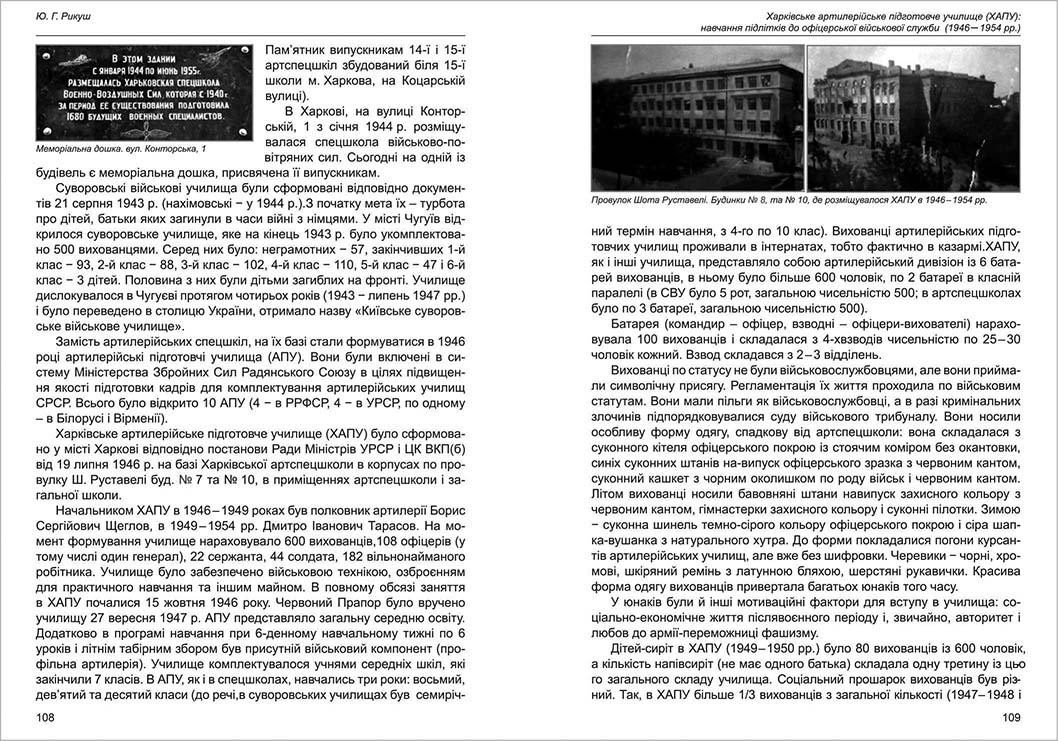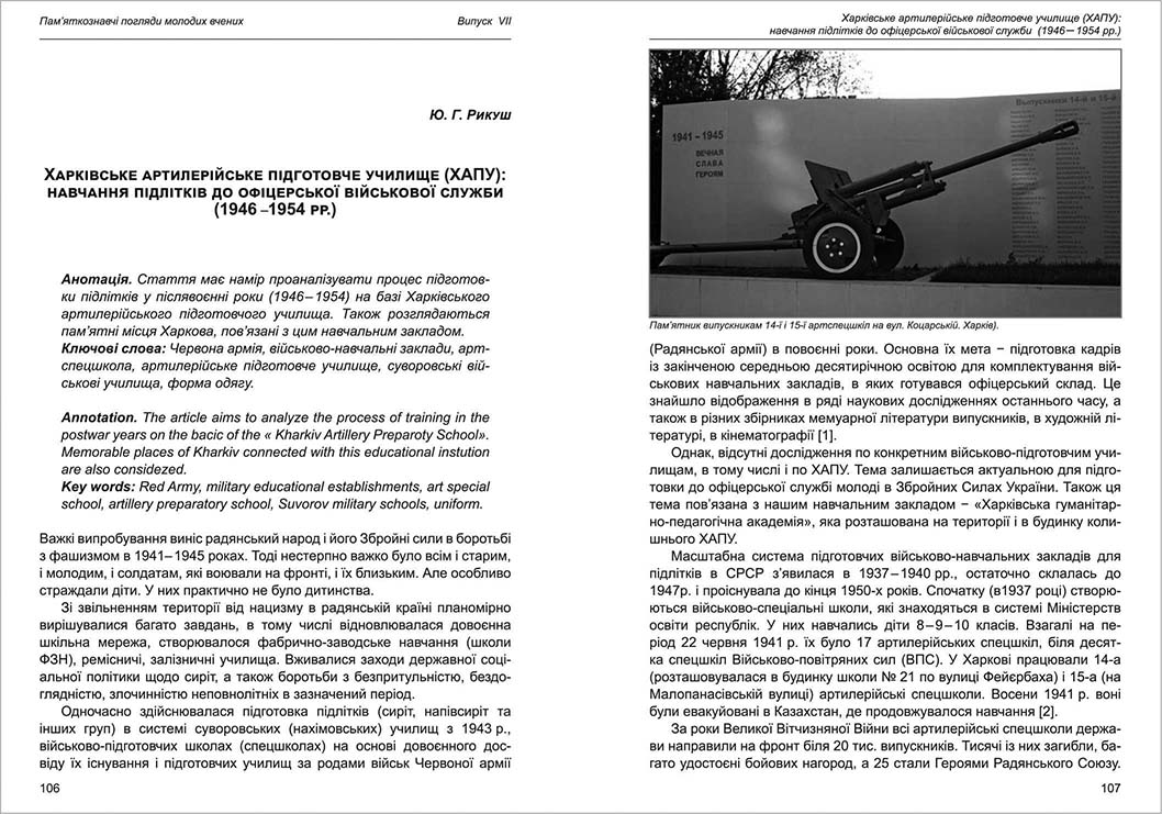 | Бібліографія: | Рикуш Ю. Г. Харківське артилерійське підготовче училище (ХАПУ): навчання підлітків до офіцерської військової служби (1946 - 1954 рр.). Пам'яткознавчі погляди молодих вчених XXI ст.: зб. наук. ст. Випуск VII, Харків : Курсор, 2021. C. 106–112 , іл. |