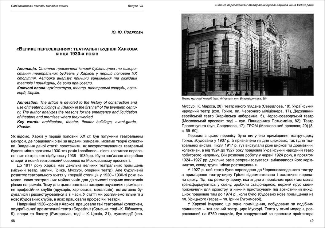 | Назва статті: | «Велике перселення»: театральні будівні Харкова кінця 1930-х років |