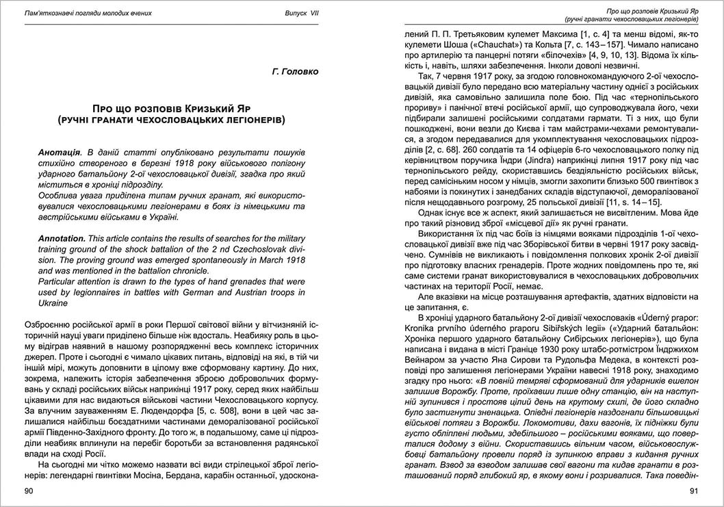 | Назва статті: | Про що розповів Кризький Яр (ручні гранати чехословацьких легіонерів) |