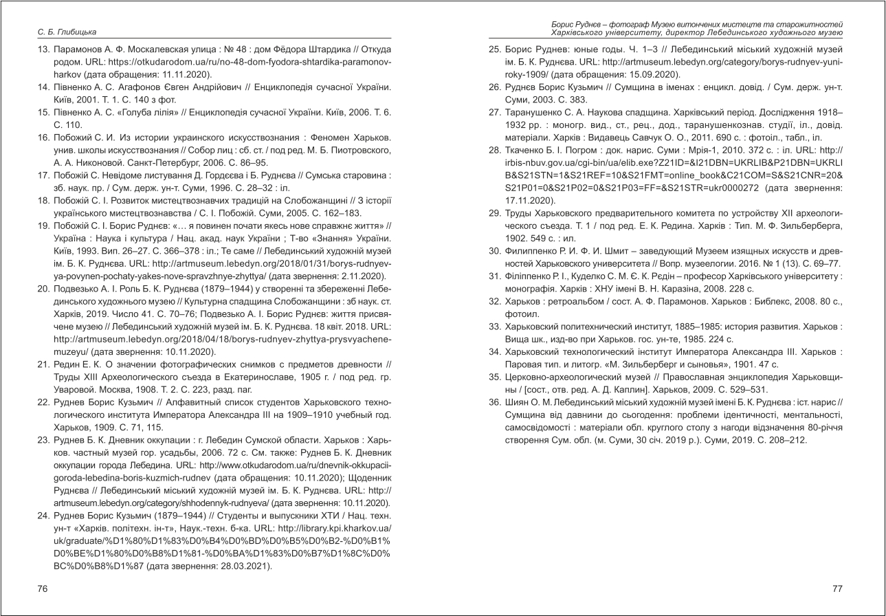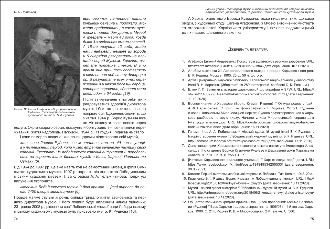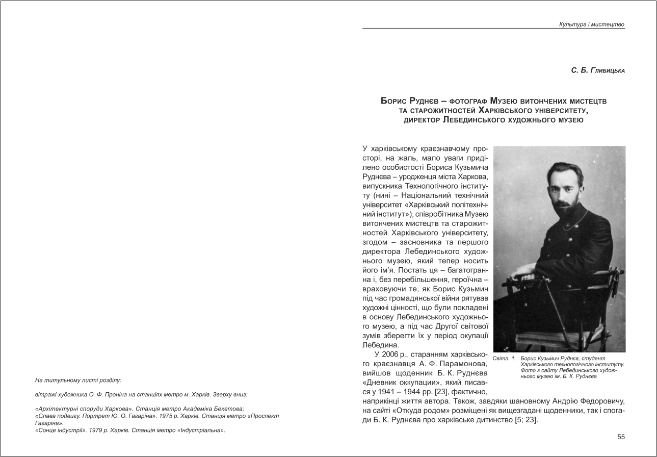 Глибицька С. Б. Борис Руднєв - фотограф Музею витончених мистецтв та старожитностей Харківського університету, директор Лебединського художнього музею.