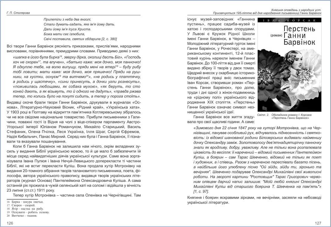 | Бібліографія: | Столярова Г. П. Княгиня оповідань з народних уст. Присвячується 195-літтю від дня народження письменниці Ганни Барвінок. Культурна спадщина Слобожанщини: зб. наук. ст. Число 53, Харків : Курсор, 2023. C. 121–128 , іл. |
