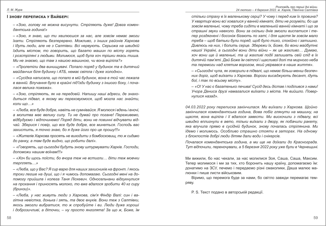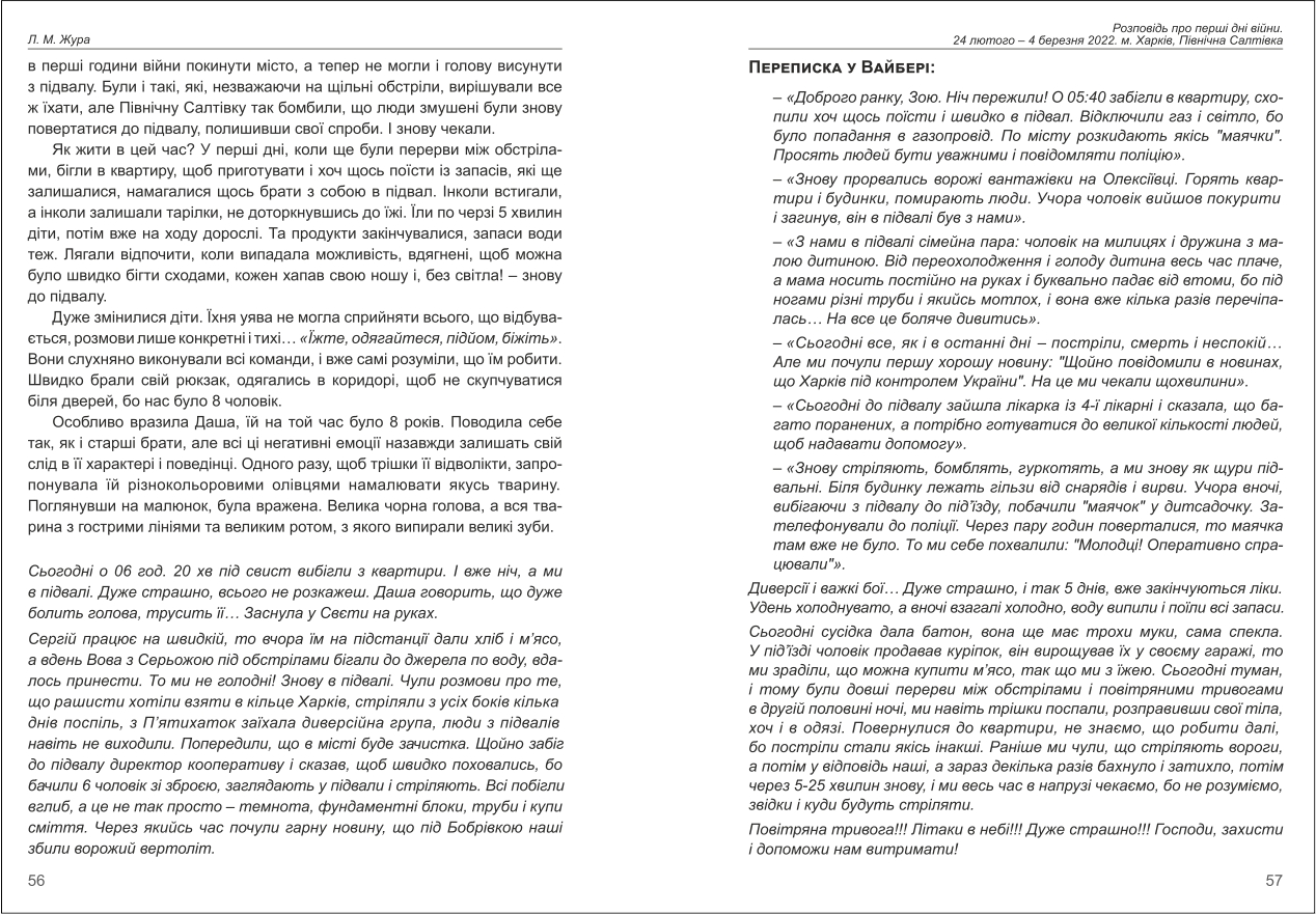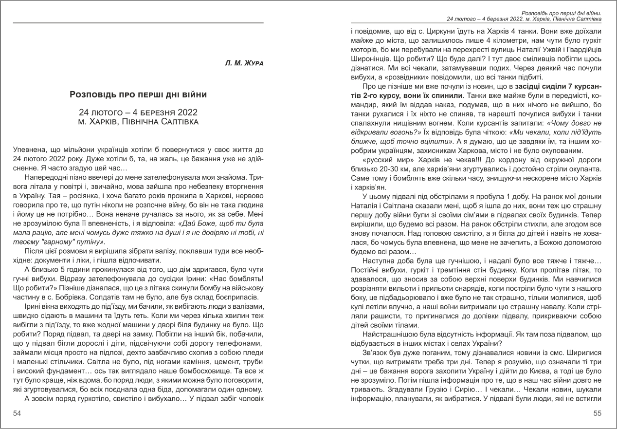 | Назва статті: | Розповідь про перші дні війни. 24 лютого – 4 березня 2022. м. Харків, Північна Салтівка |