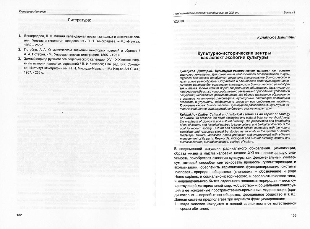 | Бібліографія: | Кулабухов Д. А. Культурно-исторические центры как аспект экологии культуры. Пам'яткознавчі погляди молодих вчених XXI ст.: зб. наук. ст. Випуск I, Харків : Курсор, 2010. C. 133–137 |